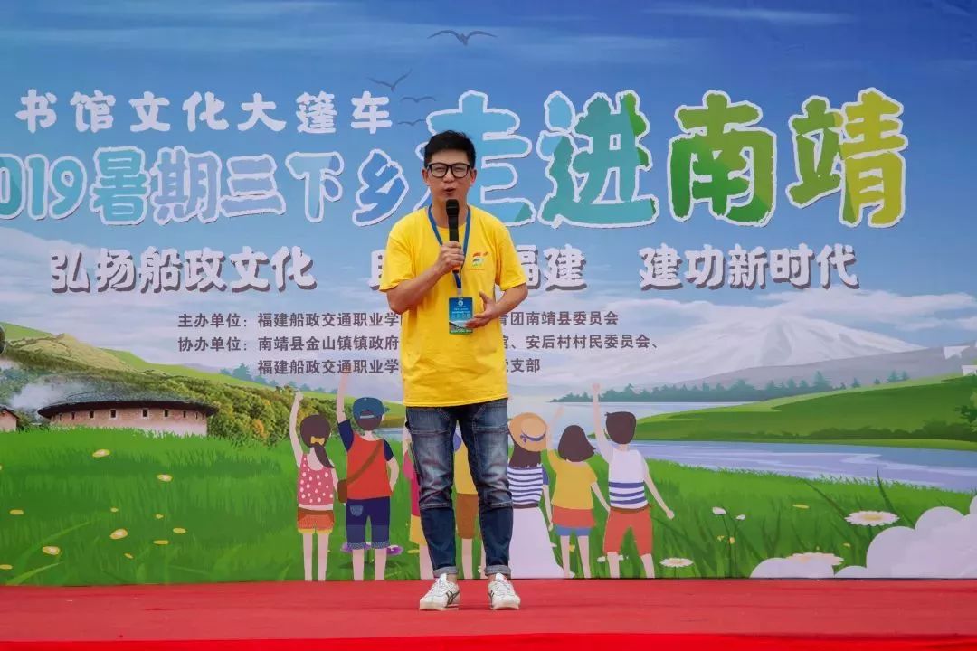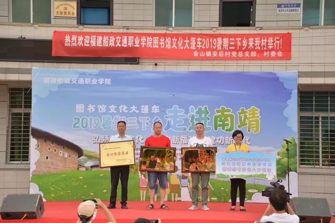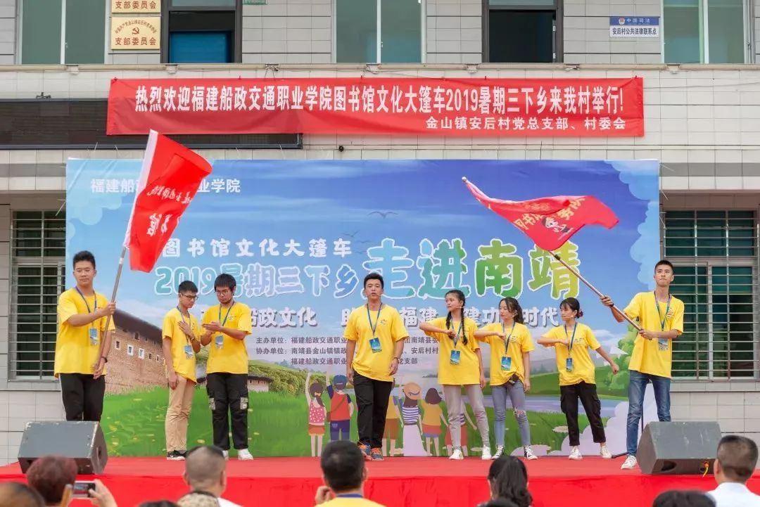 南 福建船政交通職業(yè)學(xué)院圖書(shū)館“教育關(guān)愛(ài)服務(wù)團(tuán)”2019年暑期“三下鄉(xiāng)”實(shí)踐活動(dòng),在漳州市南靖縣安后村正式拉開(kāi)了帷幕。南靖團(tuán)縣委、縣圖書(shū)館、金山鎮(zhèn)政府領(lǐng)導(dǎo),三下鄉(xiāng)社會(huì)實(shí)踐代表團(tuán)成員及安后村村民近300人在安后村村部共同參與此次三下鄉(xiāng)啟動(dòng)儀式。