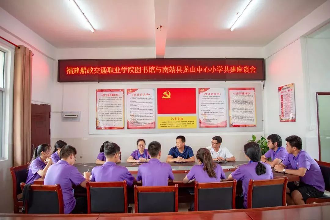 為促進(jìn)優(yōu)質(zhì)學(xué)校資源與相對(duì)薄弱學(xué)校優(yōu)勢(shì)互補(bǔ),推動(dòng)城鄉(xiāng)學(xué)校教育質(zhì)量的提升,福建船政交通職業(yè)學(xué)院圖書(shū)館2019暑期“三下鄉(xiāng)”教育關(guān)愛(ài)服務(wù)團(tuán)社會(huì)實(shí)踐隊(duì)前往鄉(xiāng)村學(xué)校青少年宮——南靖縣的龍山中心小學(xué)開(kāi)展共建座談會(huì),就體育文化教育、圖書(shū)館發(fā)展建設(shè)、協(xié)商開(kāi)展互聯(lián)互幫結(jié)對(duì)幫扶活動(dòng)及相關(guān)資源援助等問(wèn)題進(jìn)行了探討。