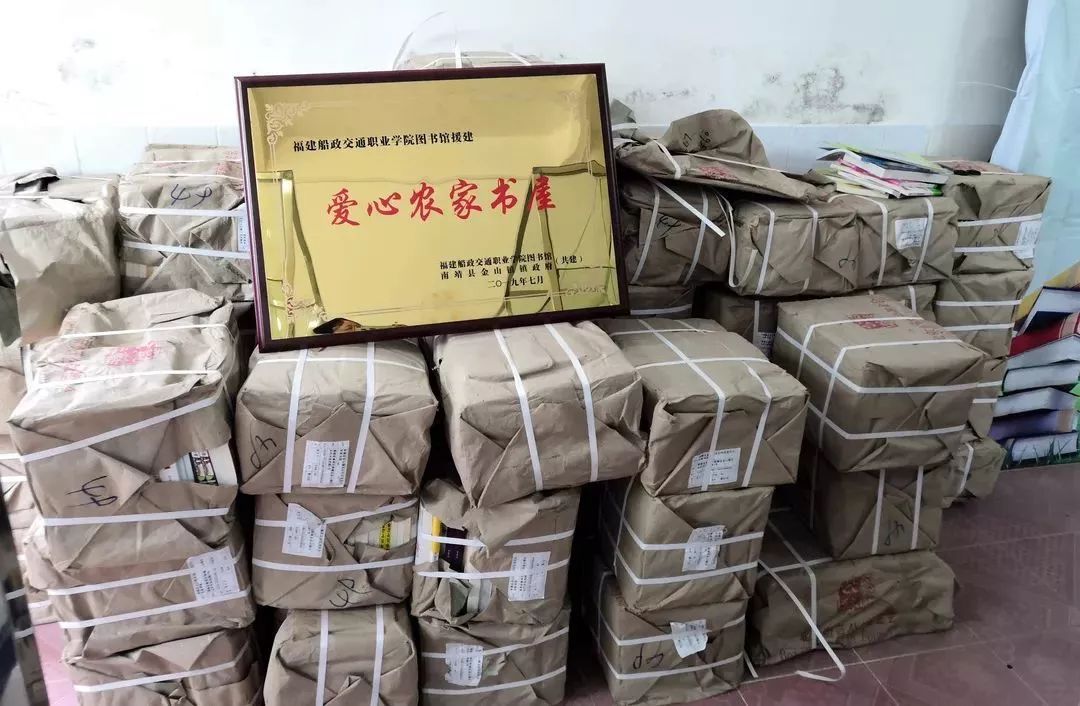 福建船政交通職業(yè)學(xué)院圖書(shū)館陳林副館長(zhǎng)在啟動(dòng)儀式上為援建的金山鎮(zhèn)的三個(gè)愛(ài)心農(nóng)家書(shū)屋授牌,并捐贈(zèng)了價(jià)值六萬(wàn)碼洋的新書(shū),金山鎮(zhèn)安后村、后眷村、東建村三個(gè)村委領(lǐng)導(dǎo),代表農(nóng)家書(shū)屋接受了愛(ài)心農(nóng)家書(shū)屋的牌匾和捐贈(zèng)的書(shū)籍。