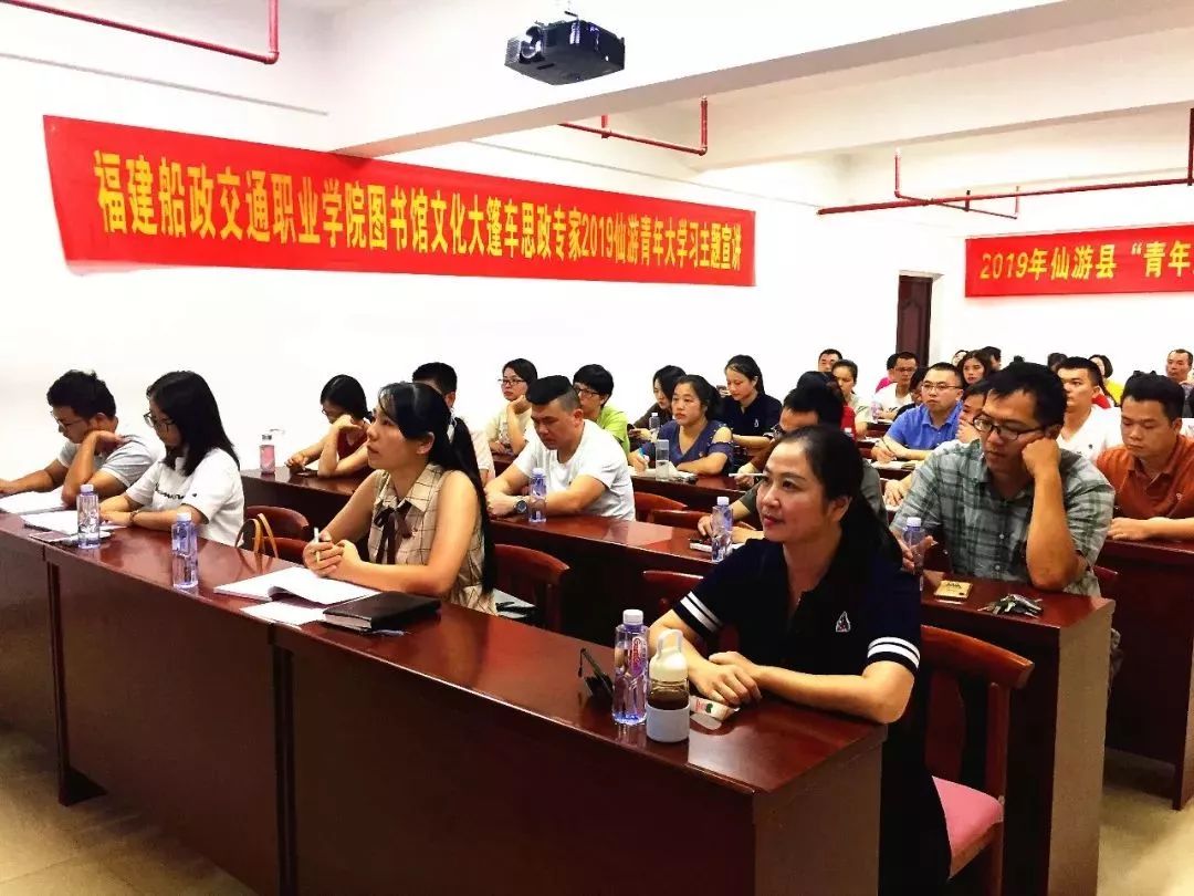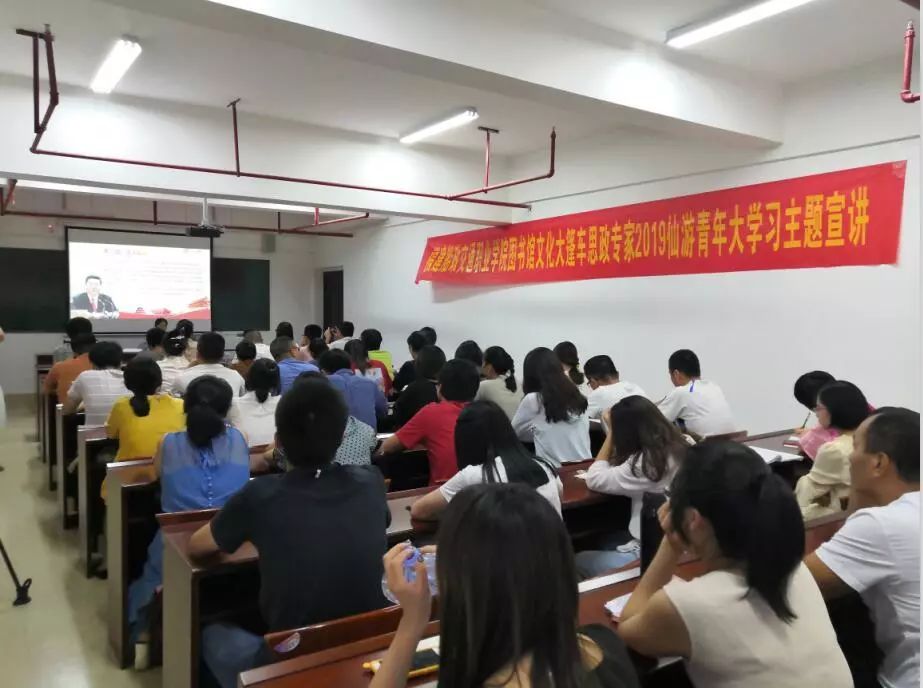 為進一步引導(dǎo)廣大青年深入學(xué)習(xí)、宣傳、貫徹習(xí)近平新時代中國特色社會主義思想和黨的十九大精神,不忘初心、牢記使命,切實增強“四個意識”,堅定“四個自信”,9月17日,仙游團縣委在縣委黨校組織開展2019年仙游縣“青年大學(xué)習(xí)”主題宣講活動,我館文化大篷車特邀思政專家走進此宣講活動,洪凌艷老師現(xiàn)場授課《平語近人》——習(xí)近平總書記用典,仙游團縣委黨支部全體黨員領(lǐng)導(dǎo)干部及50余名鄉(xiāng)鎮(zhèn)(街道)、學(xué)校團干部參加學(xué)習(xí)。