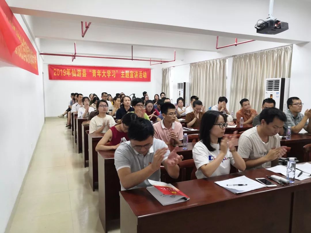為進一步引導(dǎo)廣大青年深入學(xué)習(xí)、宣傳、貫徹習(xí)近平新時代中國特色社會主義思想和黨的十九大精神,不忘初心、牢記使命,切實增強“四個意識”,堅定“四個自信”,9月17日,仙游團縣委在縣委黨校組織開展2019年仙游縣“青年大學(xué)習(xí)”主題宣講活動,我館文化大篷車特邀思政專家走進此宣講活動,洪凌艷老師現(xiàn)場授課《平語近人》——習(xí)近平總書記用典,仙游團縣委黨支部全體黨員領(lǐng)導(dǎo)干部及50余名鄉(xiāng)鎮(zhèn)(街道)、學(xué)校團干部參加學(xué)習(xí)。