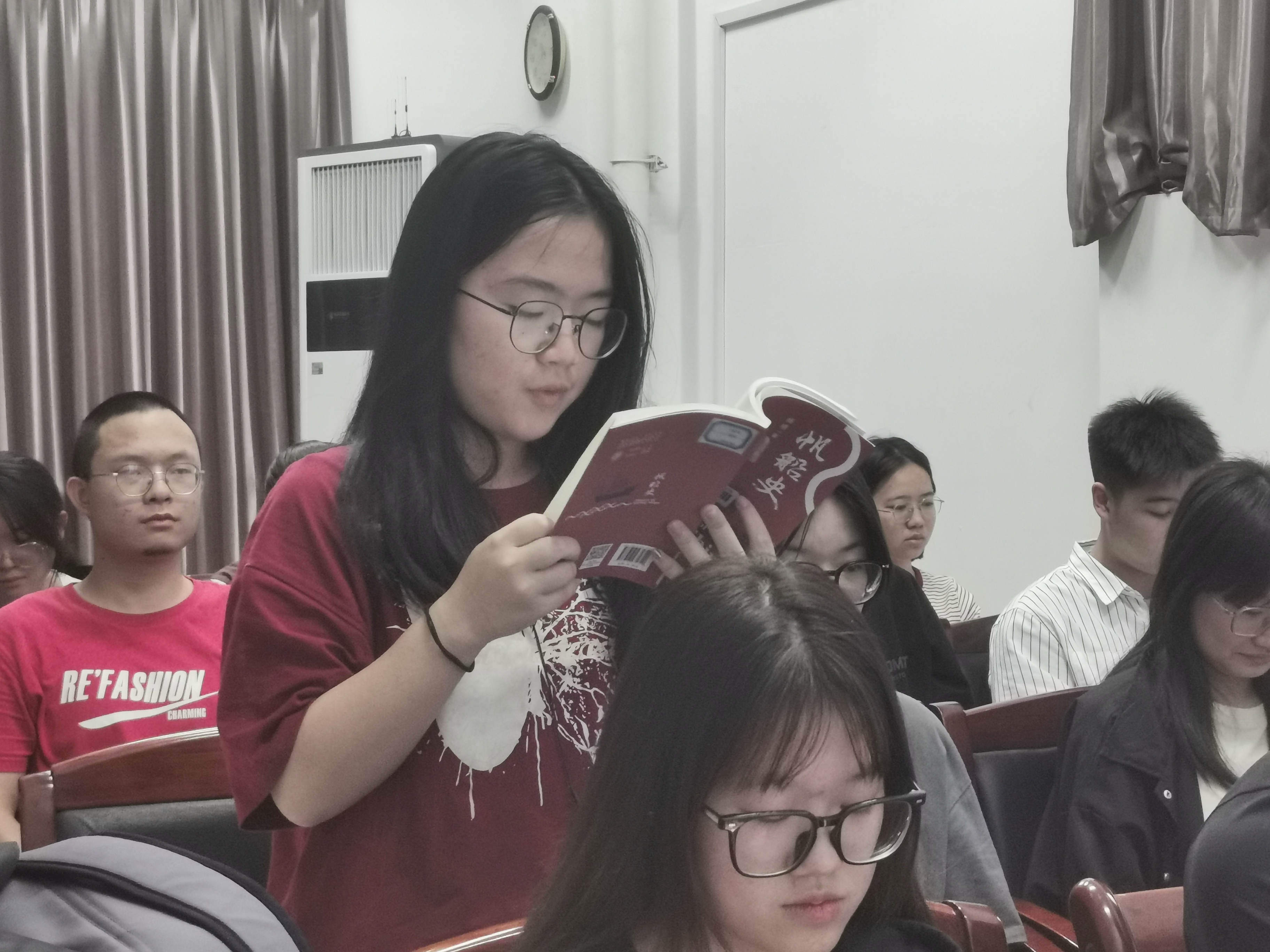 活動(dòng)現(xiàn)場(chǎng)氛圍熱烈,同學(xué)們爭(zhēng)當(dāng)領(lǐng)讀人。在閱讀分享和討論環(huán)節(jié),在場(chǎng)的同學(xué)們依次分享了自己的閱讀心得,隨后大家對(duì)分享的內(nèi)容進(jìn)行了積極的交流和討論。