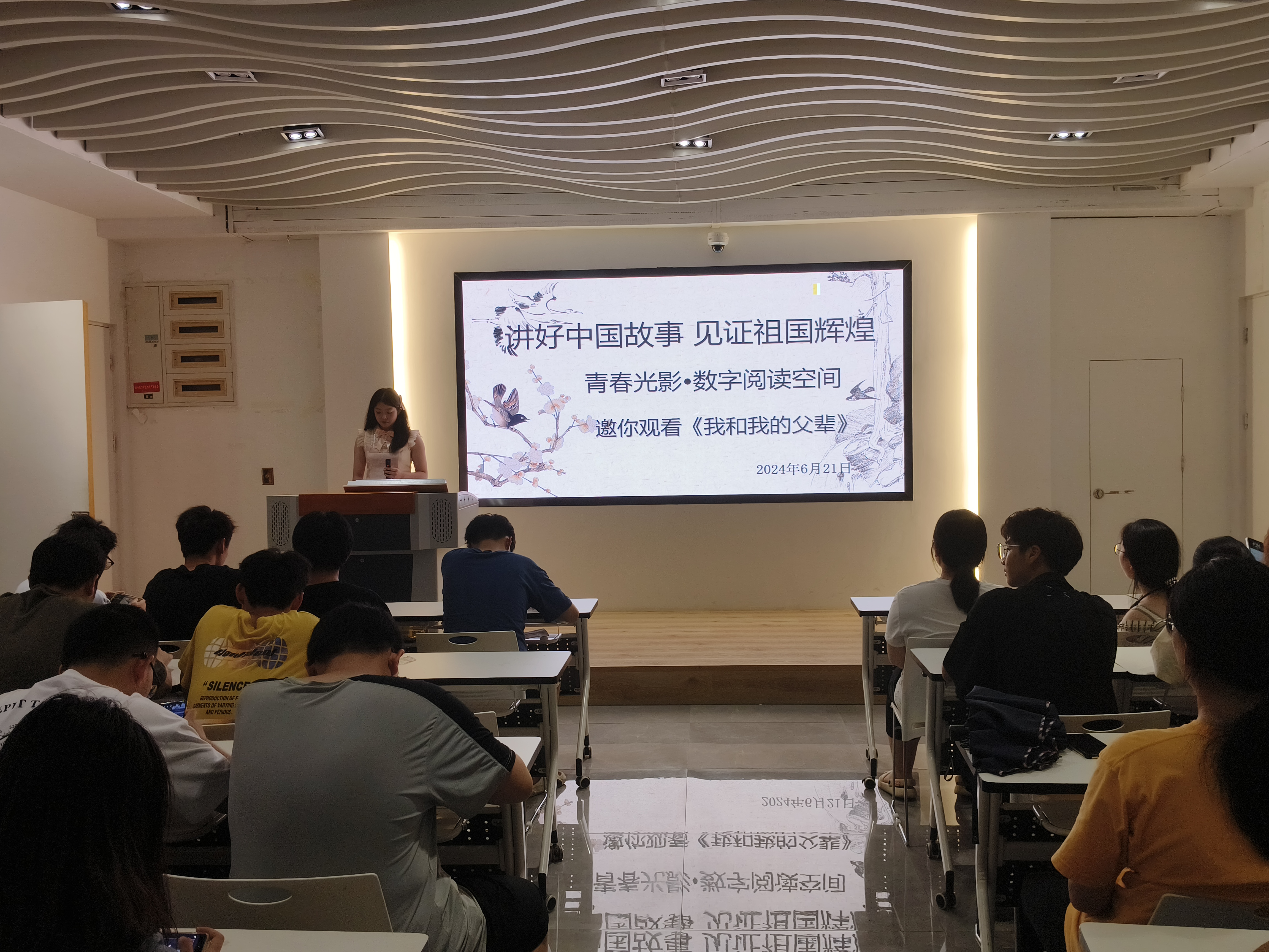 父輩們始終不忘初心,砥礪前行的奮斗歷程,以及他們傳承民族精神的堅(jiān)定信念值得我們深深品悟。2024年6月21日,青春光影?數(shù)字閱讀空間開展了“薪火相傳父輩情,自強(qiáng)以報(bào)少年行”紅色電影《我和我的父輩》展播活動(dòng)。