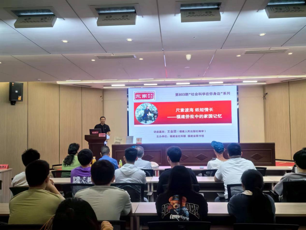 6月15日,學(xué)生志愿者們走進(jìn)福建省圖書館為“東南周末講壇”活動提供文化志愿服務(wù),協(xié)助講座現(xiàn)場活動的接待、引賓、發(fā)放宣傳資料、填寫調(diào)查問卷、整理桌椅等,并觀摩了福建人民出版社總編室主任兼審讀室主任、編審王金團(tuán)作題為《尺素渡海 紙短情長——福建僑批中的家國記憶》的學(xué)術(shù)講座,講座最后主講人與讀者們展開了熱烈的交流討論。通過深入解讀,讓學(xué)生了解什么是僑批,僑批產(chǎn)生的背景與條件,僑批業(yè)從興盛到衰落的發(fā)展過程,特別是福建僑批所蘊(yùn)含的家國情懷與桑梓情意,以及僑批所蘊(yùn)含的深厚歷史文化價(jià)值。