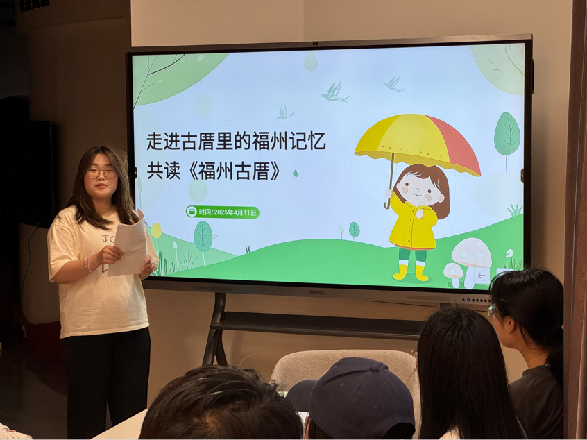 2025年4月11日,青春光影社團以福州古厝為文化底本,精心策劃了一場共讀活動。在活動進程中,借助對《福州古厝》的深度解讀以及熱烈的互動交流等形式,同學(xué)們不僅領(lǐng)略到了福州古厝的建筑之美,更深刻理解了福州古厝作為城市記憶和人文精神的象征意義,可謂收獲滿滿。