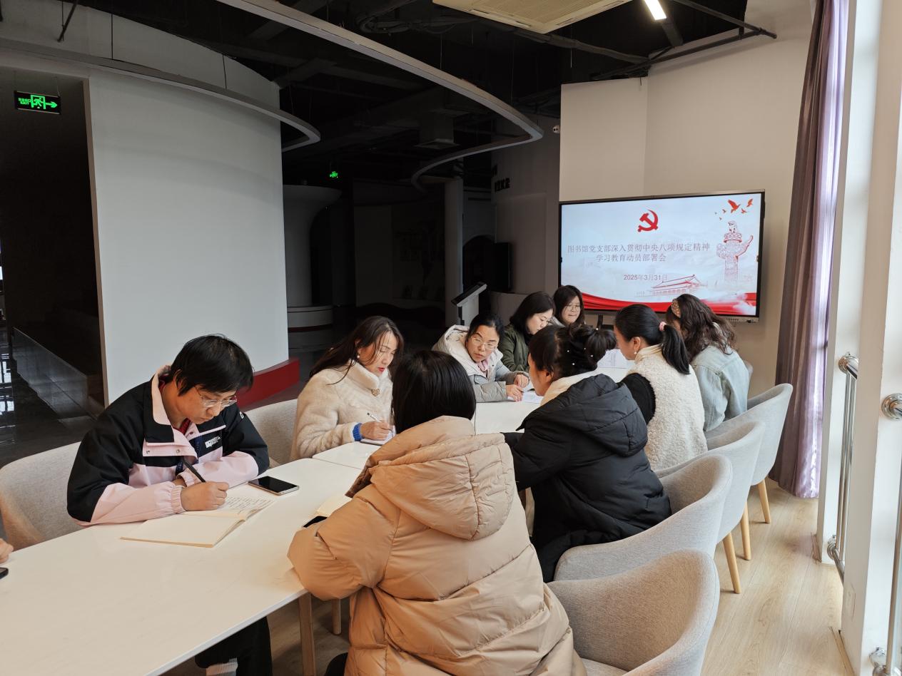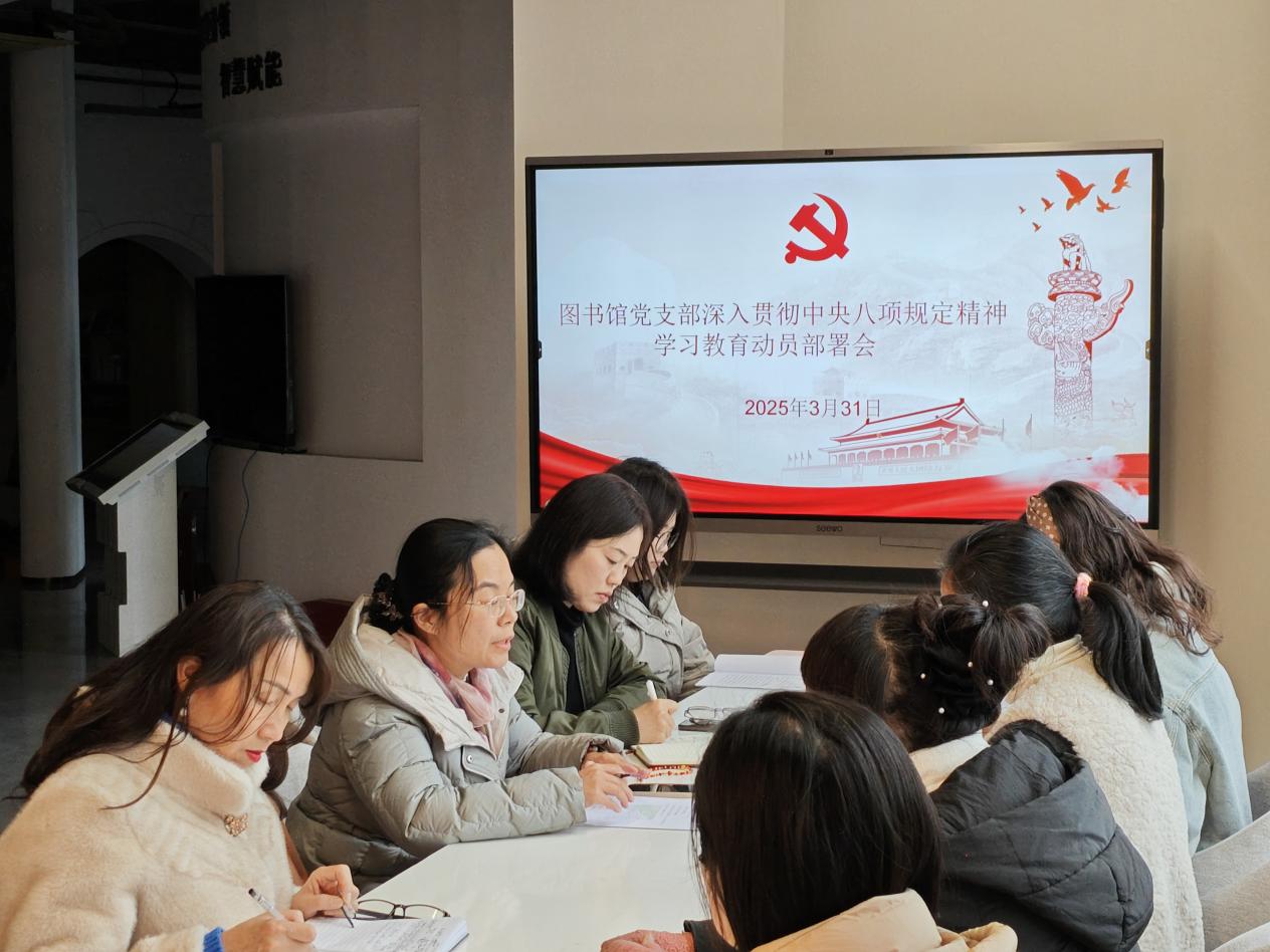 2025年3月31日,圖書館黨支部召開專題會議,會議傳達了學院關于深入貫徹中央八項規(guī)定精神學習教育動員會議的工作部署要求,全面動員和部署支部學習教育工作。會議由黨支部陳林書記主持,全體黨員參加。陳林書記指出,開展此次習教育是落實習近平總書記重要指示精神、鞏固深化主題教育成果、推進全面從嚴治黨向基層延伸的重要舉措。支部全體黨員干部要提高政治站位,深刻認識作風建設對學院高質量發(fā)展、師德師風建設及服務師生的重要意義,切實將思想和行動統(tǒng)一到黨中央決策部署上來。會議強調,要結合圖書館工作實際,學深悟透,通過集中學習、個人自學等形式,深入領會中央八項規(guī)定精神的核心要義,將作風建設貫穿文獻資源服務、讀者服務、內部管理全過程;查改結合,對照黨章黨規(guī)和崗位職責,全面查擺服務意識、工作效能、紀律執(zhí)行等方面存在的問題,建立整改臺賬并限期落實;長效常治,將學習教育與巡視整改相結合,完善制度規(guī)范,推動作風建設常態(tài)化、制度化。