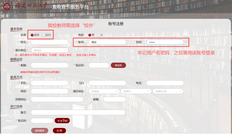 ① 注冊時(shí)“來源”請選擇“校外”,“學(xué)?!币粰谳斎搿案=ù煌殬I(yè)學(xué)院”;