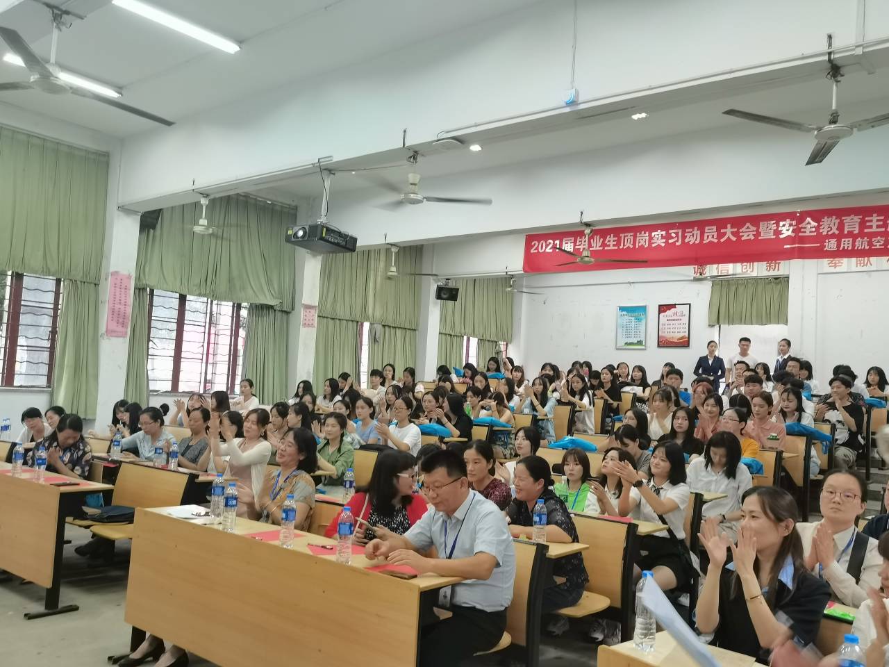 本次會議包括兩個階段,第一階段由學(xué)院院長陳常暉做頂崗實(shí)習(xí)動員、空中乘務(wù)教研室主任江敏老師部署實(shí)習(xí)工作安排;第二階由學(xué)院黨總支副書記蘇漢美做安全教育。首先,學(xué)院院長陳常暉頂崗實(shí)習(xí)是人才培養(yǎng)及教學(xué)活動的重要環(huán)節(jié),希望同學(xué)們在實(shí)習(xí)過程中積極將在學(xué)校學(xué)習(xí)到的專業(yè)理論知識運(yùn)用于實(shí)習(xí)實(shí)踐當(dāng)中,在實(shí)習(xí)中學(xué)有所獲,不斷提升專業(yè)知識。其次,希望畢業(yè)生能夠遵守用人單位的規(guī)章制度,好好工作。隨后,空中乘務(wù)教研室主任江敏老師詳細(xì)部署了明確了實(shí)習(xí)時間、實(shí)習(xí)工作的任務(wù),勉勵學(xué)生認(rèn)真工作。