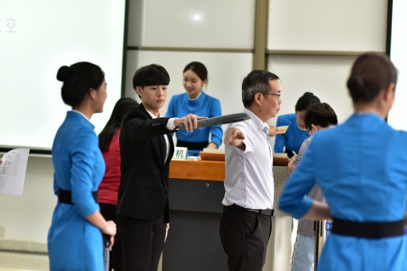 在旅途中,老師與同學共同模擬演示了客艙服務(wù)的全過程以及各種突發(fā)情況,包括迎接乘客登機、安全演示、客艙餐飲與娛樂服務(wù)、歡送乘客下飛機等。18空中乘務(wù)的同學們能明確并熟悉客艙服務(wù)的工作程序及相關(guān)內(nèi)容要求,很好地展現(xiàn)空中乘務(wù)員的職業(yè)形象和專業(yè)素養(yǎng),并能熟悉客艙安全規(guī)則、安全管理,能完整而又準確地提供客艙正餐服務(wù)。