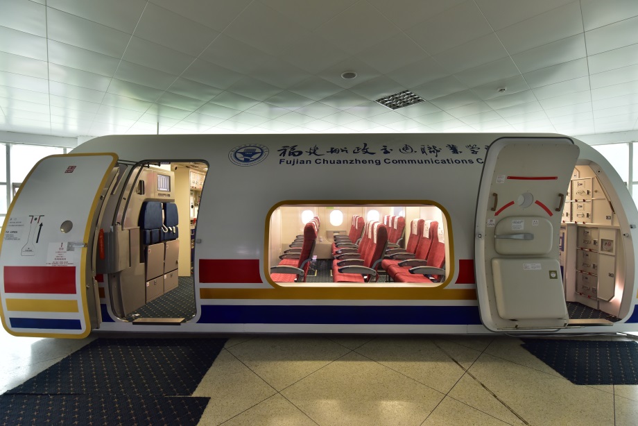 從地面的值機、驗證、安檢、登機開始,就感受到18空中乘務(wù)的同學燦爛的笑容和專業(yè)的素質(zhì)??此茝碗s的程序,在同學們熟練的操作引導下,“乘客們”快速有序地登上這架航班。
