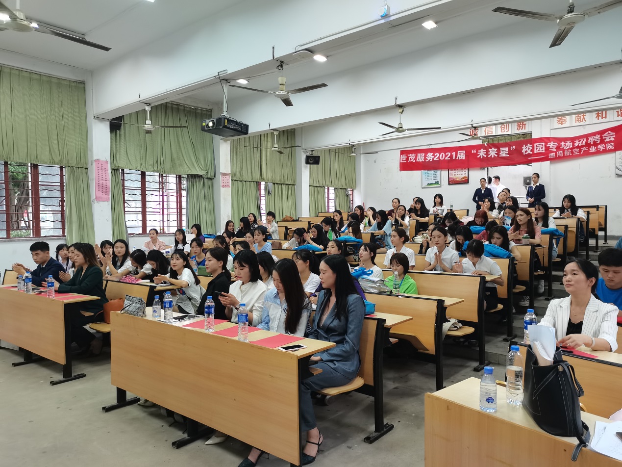 為推進通用航空產(chǎn)業(yè)學(xué)院2021屆畢業(yè)生高質(zhì)量就業(yè),將企業(yè)引進校園,為學(xué)生提供就業(yè)崗位。2020年9月24日下午,通用航空產(chǎn)業(yè)學(xué)院與世茂服務(wù)在福建船政交通職業(yè)學(xué)院8號樓土一階教室舉辦世茂服務(wù)2021屆“未來星”校園專場招聘會。世茂服務(wù)高端服務(wù)事業(yè)部招聘培訓(xùn)負(fù)責(zé)人顧雪經(jīng)理、福州管理中心負(fù)責(zé)人葉煒弘總、福州管理中心袁思瑜經(jīng)理,閩北管理中心柯利利經(jīng)理、輔導(dǎo)員莊智群以及2021屆畢業(yè)生100多名參加,會議由輔導(dǎo)員范聲斌老師主持。