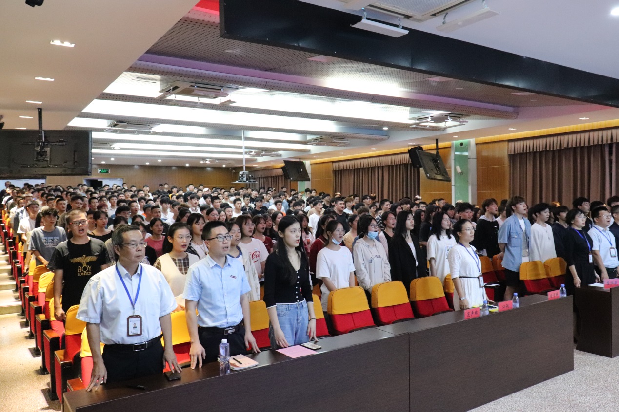 全體師生起立唱國歌,開學典禮在莊嚴肅穆的國歌聲中正式拉開帷幕。