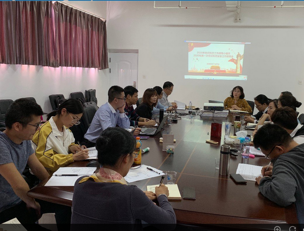 2020年9月30日下午,我院在圖書館會(huì)議室召開2020年意識(shí)形態(tài)領(lǐng)導(dǎo)小組暨2020年第一次意識(shí)形態(tài)安全工作聯(lián)席會(huì)。分析研判學(xué)院開學(xué)2個(gè)月來,當(dāng)前意識(shí)形態(tài)工作情況以及對2020年意識(shí)形態(tài)工作進(jìn)行部署。學(xué)院院長、黨總支副書記、支部書記、各部門負(fù)責(zé)人參加會(huì)議。會(huì)議由蘇漢美副書記主持。
