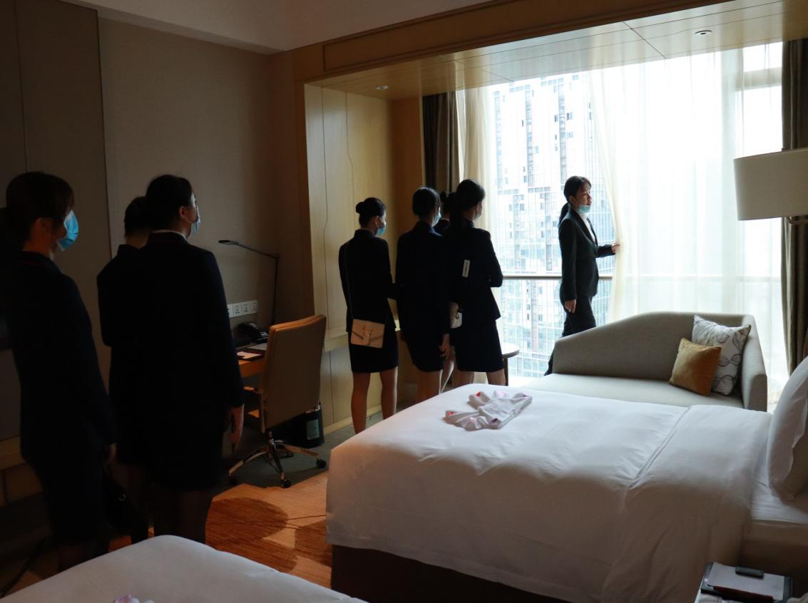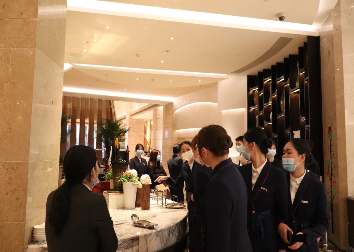 2020年10月21日下午,在輔導員范聲斌老師帶領下,2019級空乘1班共47名學生到達福州融僑皇冠假日酒店進行課程實踐參觀。