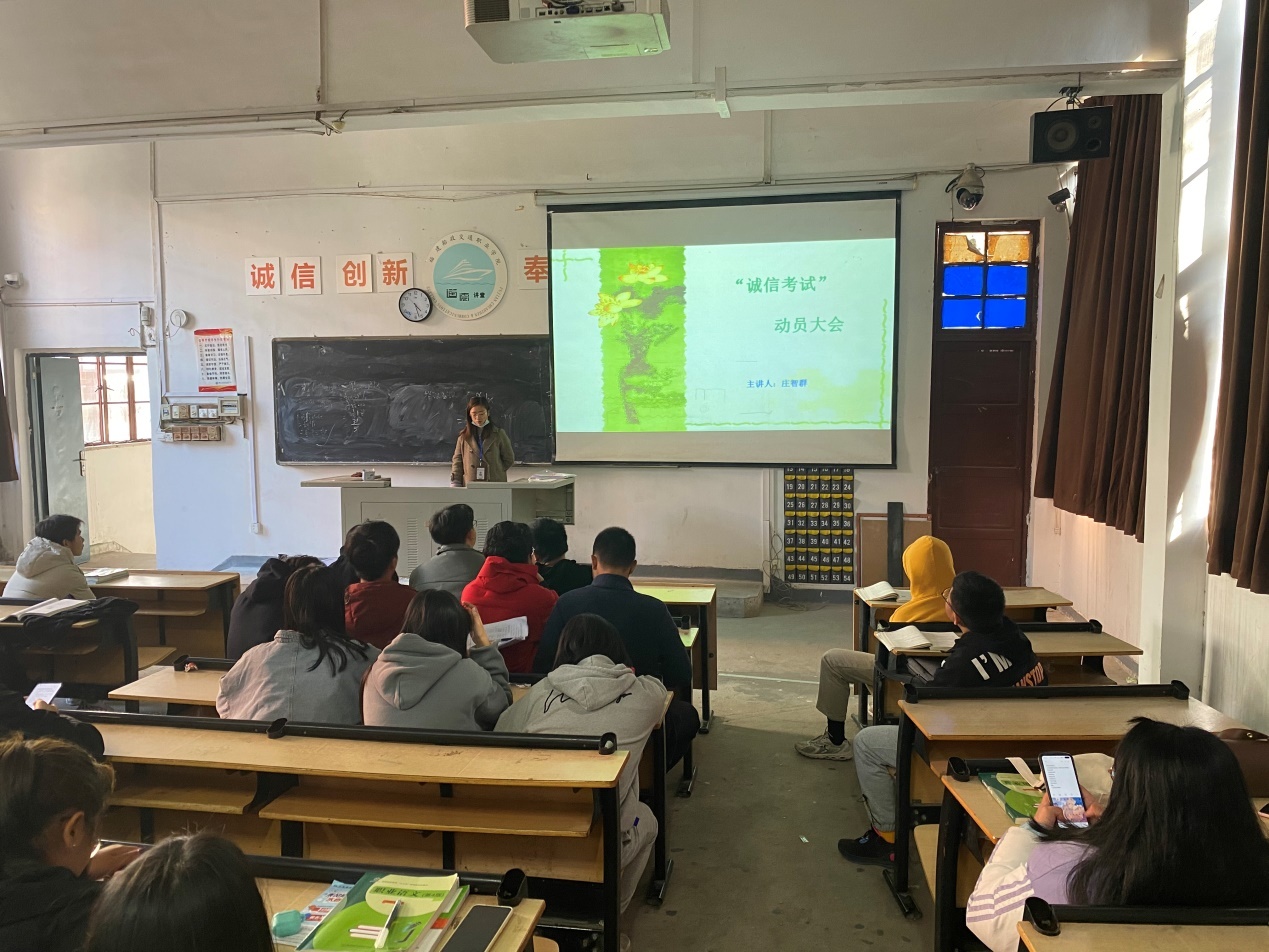 會議伊始,輔導(dǎo)員范聲斌、輔導(dǎo)員莊智群宣讀了2020年考試安排,并作了有關(guān)考試與學(xué)習(xí)的講話,重點(diǎn)強(qiáng)調(diào)了要端正考試態(tài)度,正確看待考試結(jié)果。隨后就宿舍消防、防盜、防詐騙等安全問題作出強(qiáng)調(diào),希望同學(xué)們嚴(yán)格遵守宿舍安全規(guī)章制度。對于即將到來的元旦、寒假假期學(xué)生離校的人身、財(cái)產(chǎn)、交通等安全教育,特別強(qiáng)調(diào)了假期期間疫情防控的諸項(xiàng)相關(guān)要求。各班主任對考試違紀(jì)與考試作弊處理辦法作解讀,希望同學(xué)們誠信應(yīng)考,考出理想成績。最后輔導(dǎo)員范聲斌、輔導(dǎo)員莊智群再次向全體同學(xué)宣傳了艾滋病如何預(yù)防的知識,會議結(jié)束后全體學(xué)生簽署了“誠信考試”承諾書。