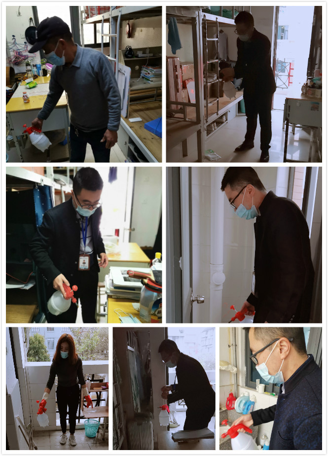 為進(jìn)一步營(yíng)造干凈、整潔、健康的宿舍環(huán)境,筑牢校園安全健康防線, 3月12日上午由黨總支副書記蘇漢美帶領(lǐng)輔導(dǎo)員范聲斌、莊智群,聯(lián)同后勤處物業(yè)管理人員,深入學(xué)生宿舍進(jìn)行全面通風(fēng)、衛(wèi)生清理和全覆蓋消毒。保障住宿環(huán)境干凈、空氣清新、無傳染源,讓即將返校的同學(xué)們重回寢室時(shí)能感受到新鮮的空氣。