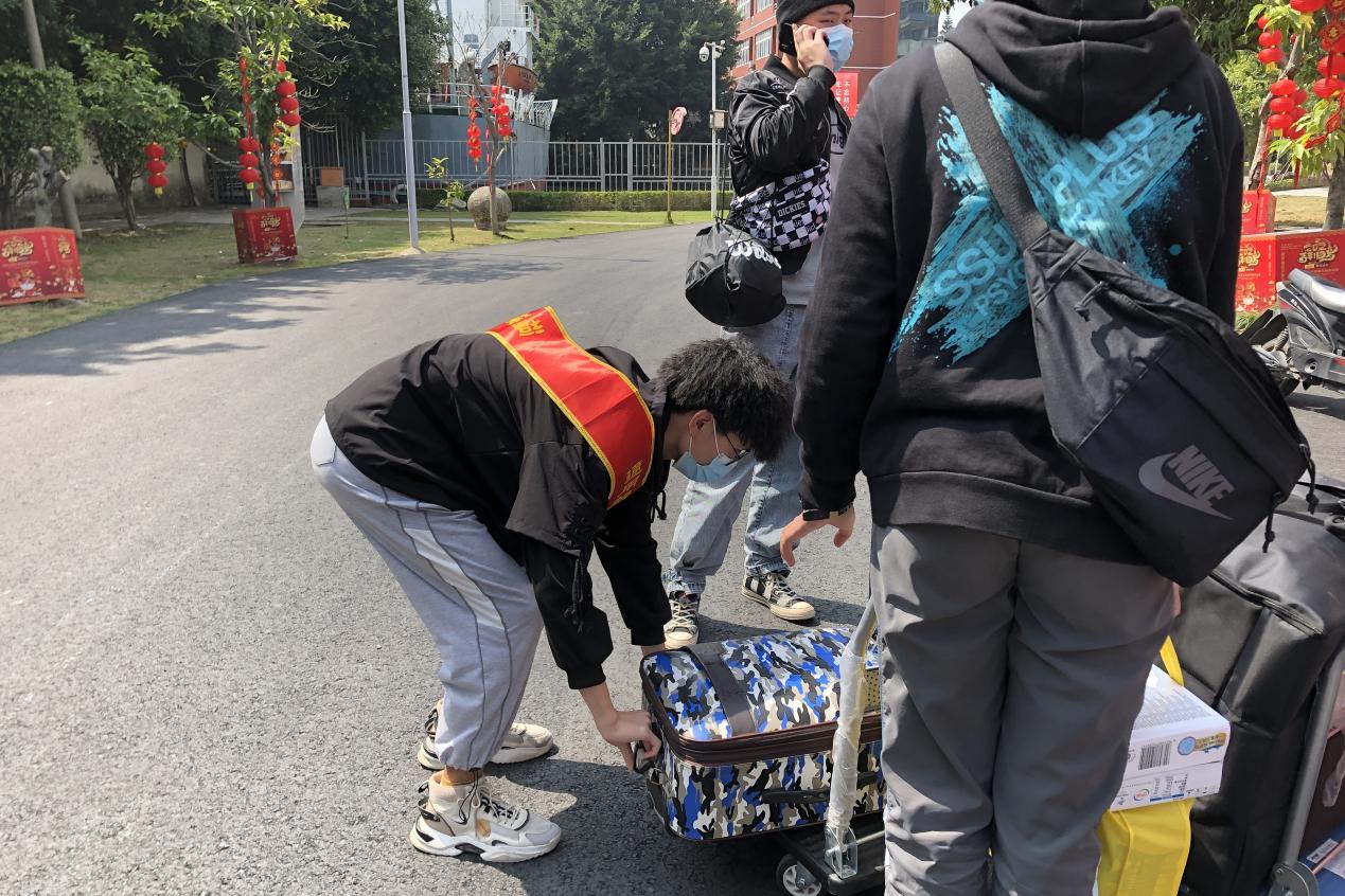 校園內(nèi)處處可見學(xué)生志愿者們幫助同學(xué)們運(yùn)送行李、耐心引導(dǎo)學(xué)生入校的身影,返?,F(xiàn)場秩序井然、有條不紊。悉心的關(guān)切與眉眼間的笑意透著對同學(xué)們體貼入微的關(guān)懷。