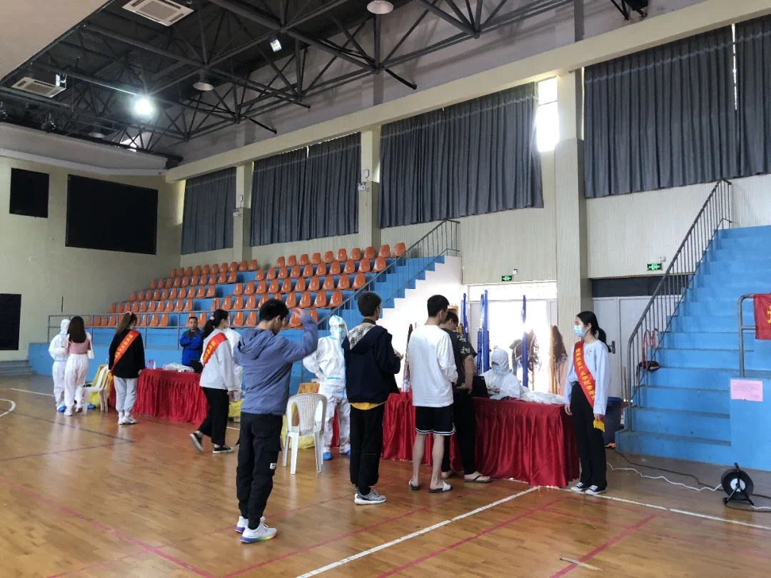 本次志愿服務(wù)內(nèi)容主要是協(xié)助核酸檢測工作人員做好核酸檢測工作,現(xiàn)場維護同學(xué)們秩序,維持檢測人員保持一米距離,引導(dǎo)同學(xué)們有序參與,做到不聚集、不扎堆。在文體中心核酸檢測點每個角落,都可以看見志愿者身上醒目的貼著“我是黨員、入黨積極分子、沖鋒在前”的忙碌身影。為民服務(wù),傳遞溫暖笑容,志愿者加入到核酸檢測工作中來,使得學(xué)校全員核酸檢測工作按下了快捷鍵。