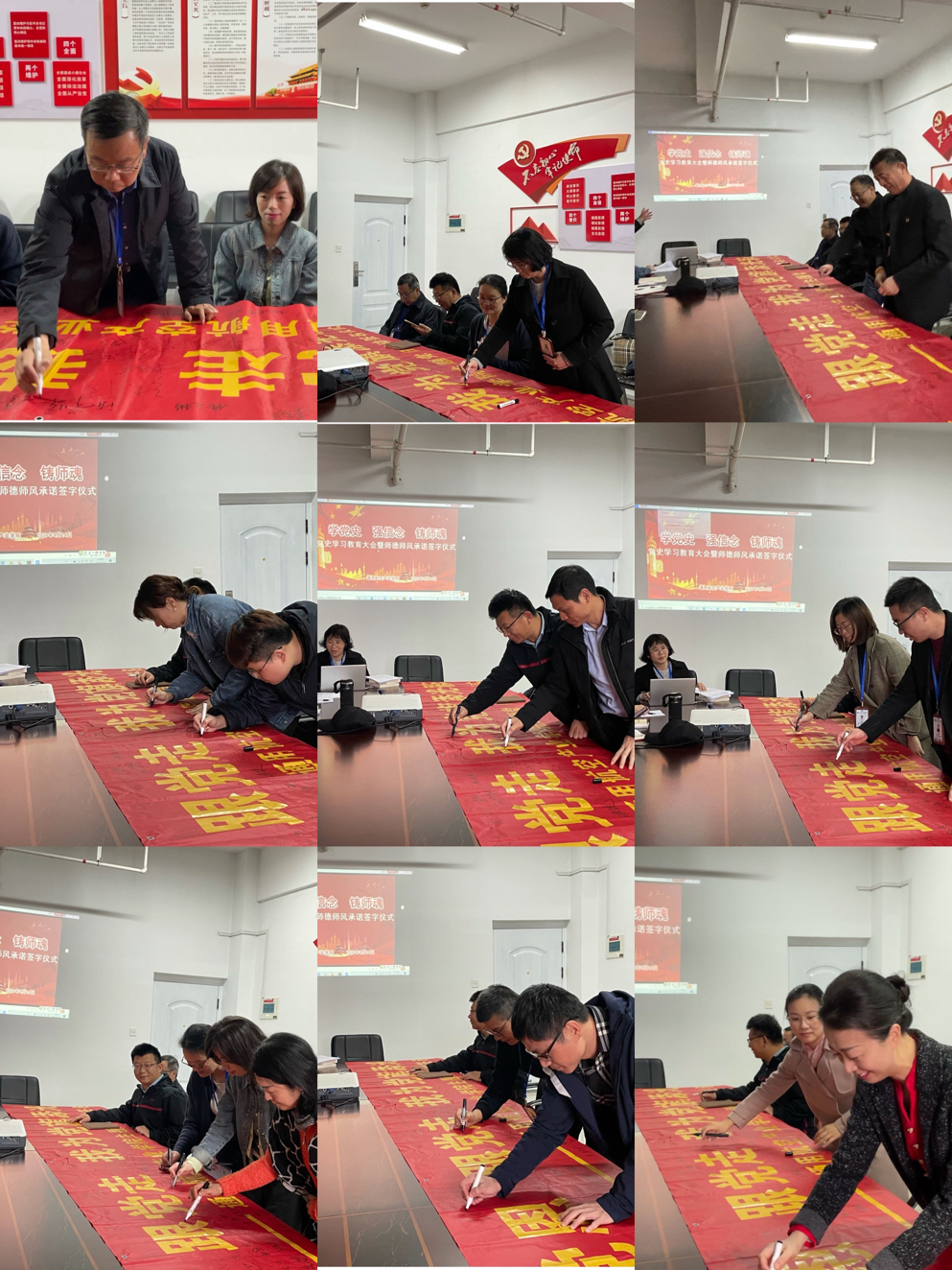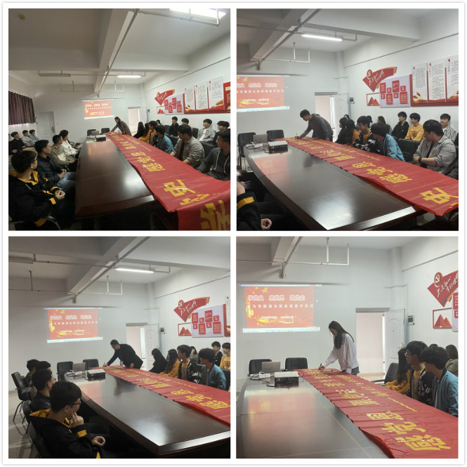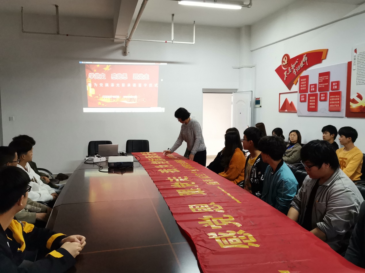 所有黨員和學生代表依次在“學黨史、感恩黨、跟黨走,我為黨旗添光彩”的橫幅上一一簽名,許下承諾,用實際行動踐行初心使命。