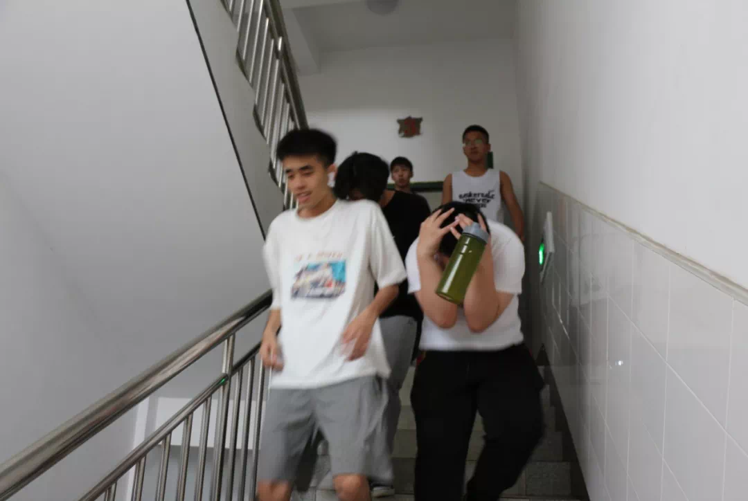 14時50分開展地震逃生演練,同學們在疏導人員的引導下,按照預定疏散路線快速撤離到高區(qū)操場,隨后由各班負責人清點人數(shù),確認每位同學安全逃生情況。