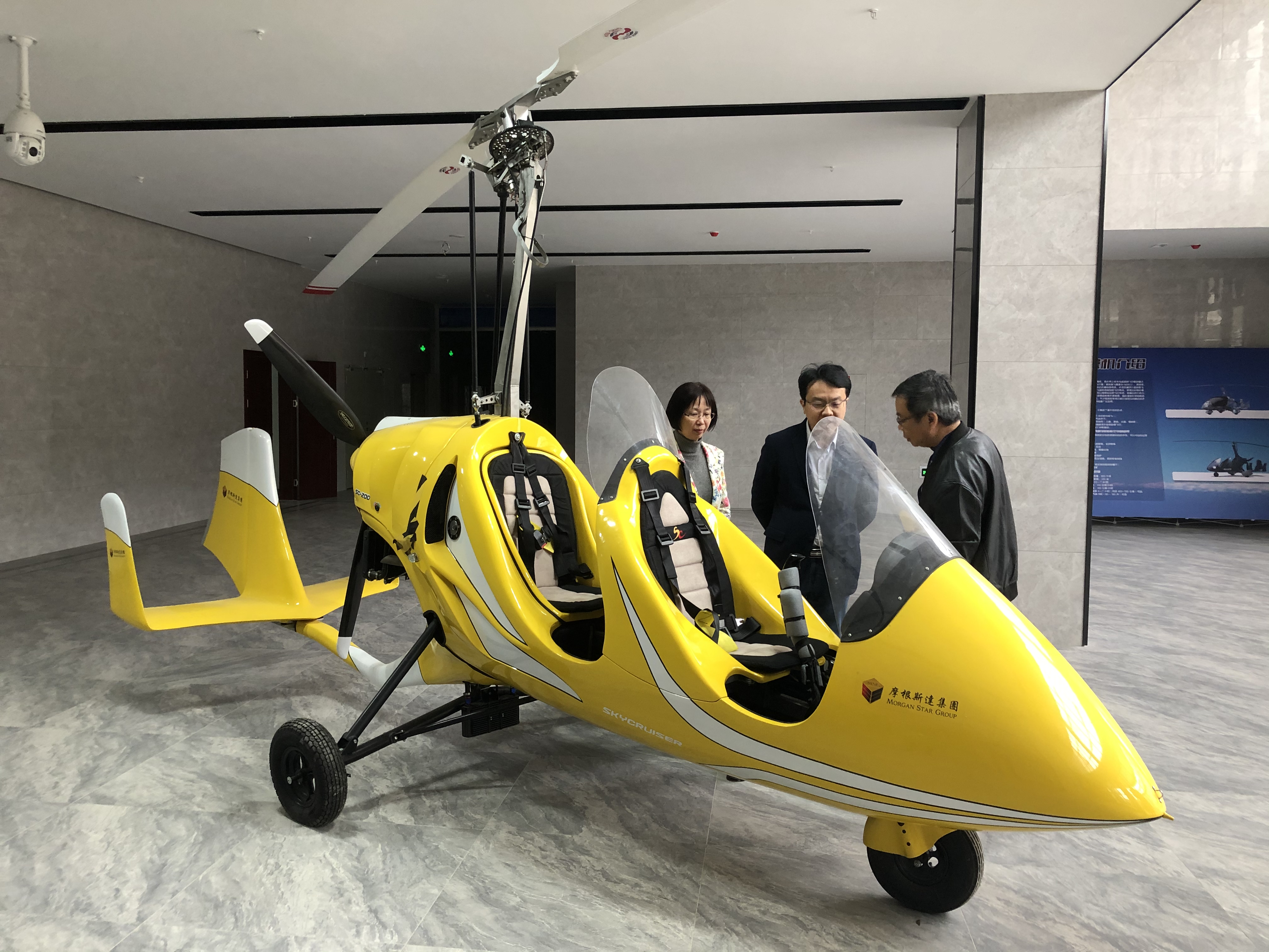 李海明處長一行,還參觀了研發(fā)中心加盟企業(yè)摩根斯達集團捐贈的通航旋翼機。
