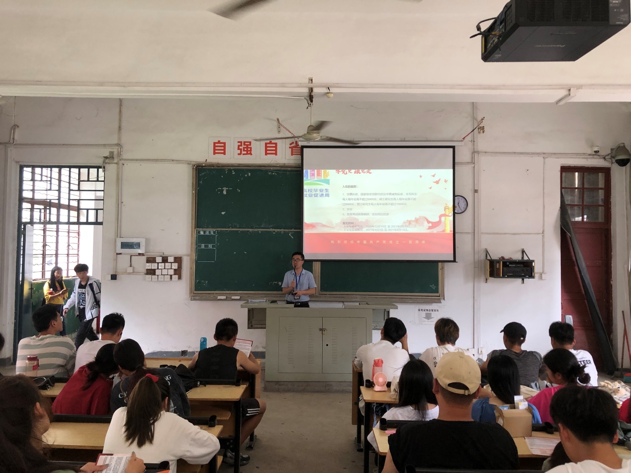 在分享會完畢之后,輔導員范聲斌作為我院征兵工作的負責人,向大家講解了當今國家對于大學生應征入伍的優(yōu)惠政策,包括各種各樣的經(jīng)濟政策和生活學習上的優(yōu)先。以及應征入伍對于身體素質(zhì)上的要求,還有應征入伍的報名流程,鼓勵我院青年大學生積極響應國家號召到部隊的大熔爐中鍛煉自己,提高自己,為祖國的國防事業(yè)作出應有的貢獻。