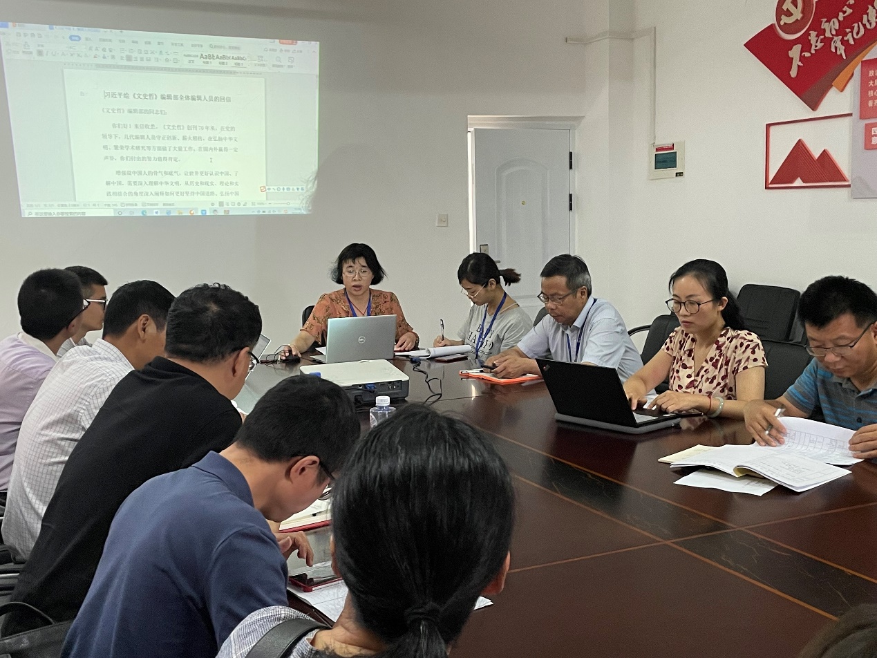 6月9日下午,黨總支蘇漢美副書記主持召開學院工作會議,集體學習習近平總書記給《文史哲》編輯部全體編輯人員重要回信精神。并就如何貫徹落實總書記的重要回信精神展開專題研討。