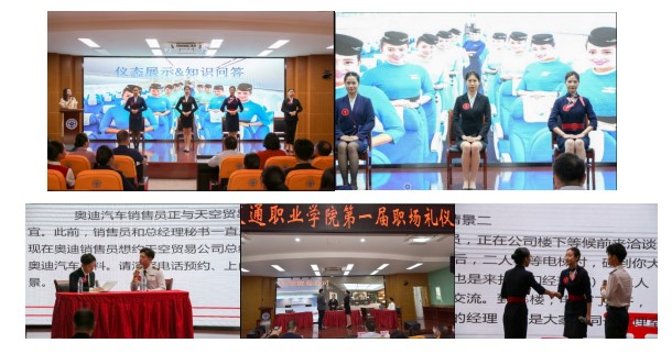 本次大賽選手來自各二級學(xué)院,共有40位同學(xué)參與。經(jīng)過優(yōu)美的儀態(tài)展示、腦力激蕩的問答環(huán)節(jié)和精彩紛呈的情景演繹,最終角逐出一、二、三等獎。展現(xiàn)了選手的職業(yè)素質(zhì),用自己的精神面貌、肢體語言等詮釋職場禮儀規(guī)范,給現(xiàn)場的觀眾帶了了一場別開生動的禮儀課。