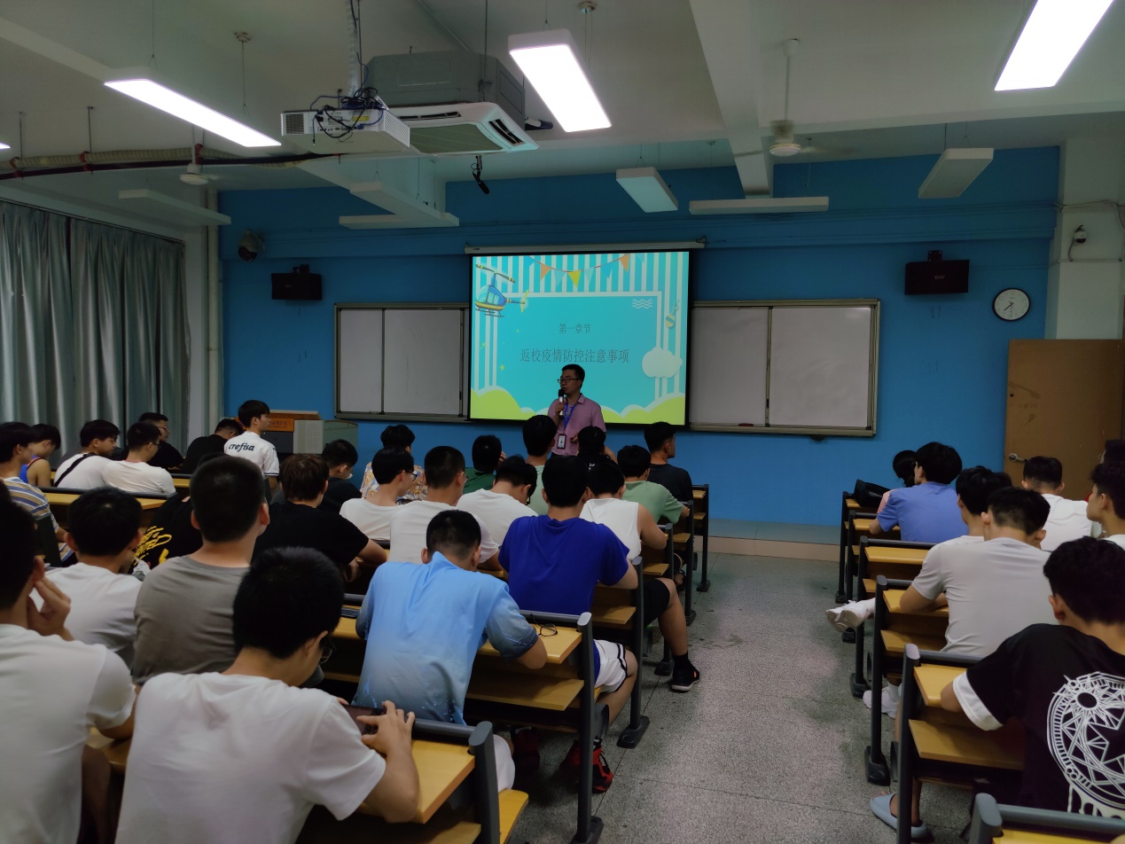 9月5日晚,輔導(dǎo)員范聲斌、輔導(dǎo)員陸李欽及各班班主任,分別在31號樓308教室,給2020級全體學(xué)生召開反詐騙安全教育暨開學(xué)第一課主題班會。輔導(dǎo)員、班主任從返校疫情防控注意事項(xiàng)、傳染病防控知識教育、法律法規(guī)知識教育