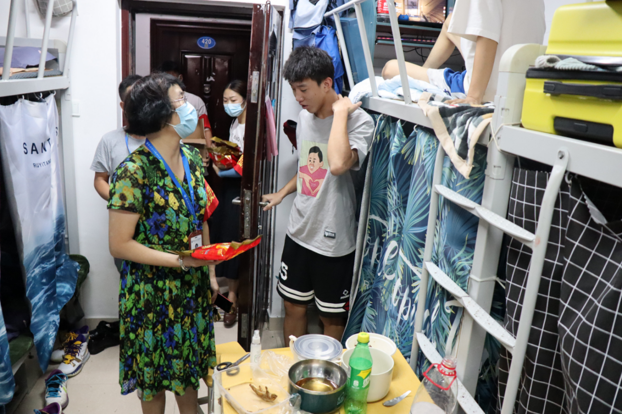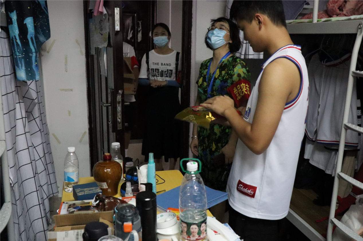 “因?yàn)橐咔榉揽氐脑?,離家較的同學(xué)們不能回家團(tuán)聚,但從你們跨入校門的那一刻起,學(xué)校就和你們?cè)谝黄?,學(xué)校、老師就是你們的家人,你們?cè)趯W(xué)校所表現(xiàn)出來的勤奮刻苦、品學(xué)兼優(yōu)是學(xué)校的驕傲?!薄巴瑢W(xué)們一定要堅(jiān)信在黨中央的堅(jiān)強(qiáng)領(lǐng)導(dǎo)下,在全國(guó)人民的共同努力下,我們一定能夠取得這場(chǎng)‘戰(zhàn)疫’的勝利!去迎接風(fēng)雨過后更加絢麗的彩虹!”蘇漢美副書記將月餅送到每個(gè)同學(xué)手中,并深情寄語,希望大家在大學(xué)期間能珍惜時(shí)間,養(yǎng)成良好的學(xué)習(xí)和生活習(xí)慣,以優(yōu)異的成績(jī)回報(bào)國(guó)家、社會(huì)和家人。