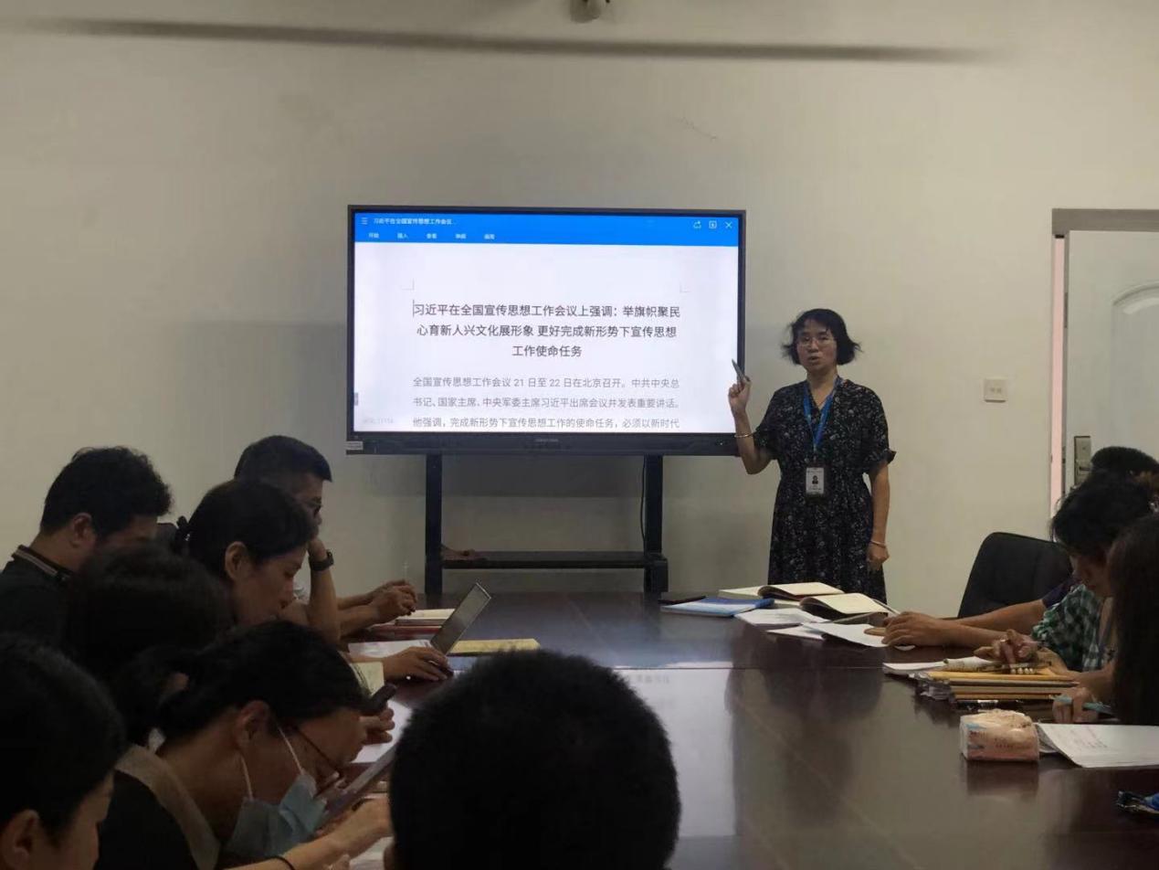 會上,黨總支副書記蘇漢美同志首先傳達(dá)了學(xué)校關(guān)于意識形態(tài)責(zé)任制相關(guān)文件精神,并與參會人員共同學(xué)習(xí)了《習(xí)近平在全國宣傳思想工作會議上強(qiáng)調(diào):舉旗幟聚民心育新人興文化展形象 更好完成新形勢下宣傳思想工作使命任務(wù)》、《關(guān)于新發(fā)展階段意識形態(tài)領(lǐng)域使命的思考》2篇文章。