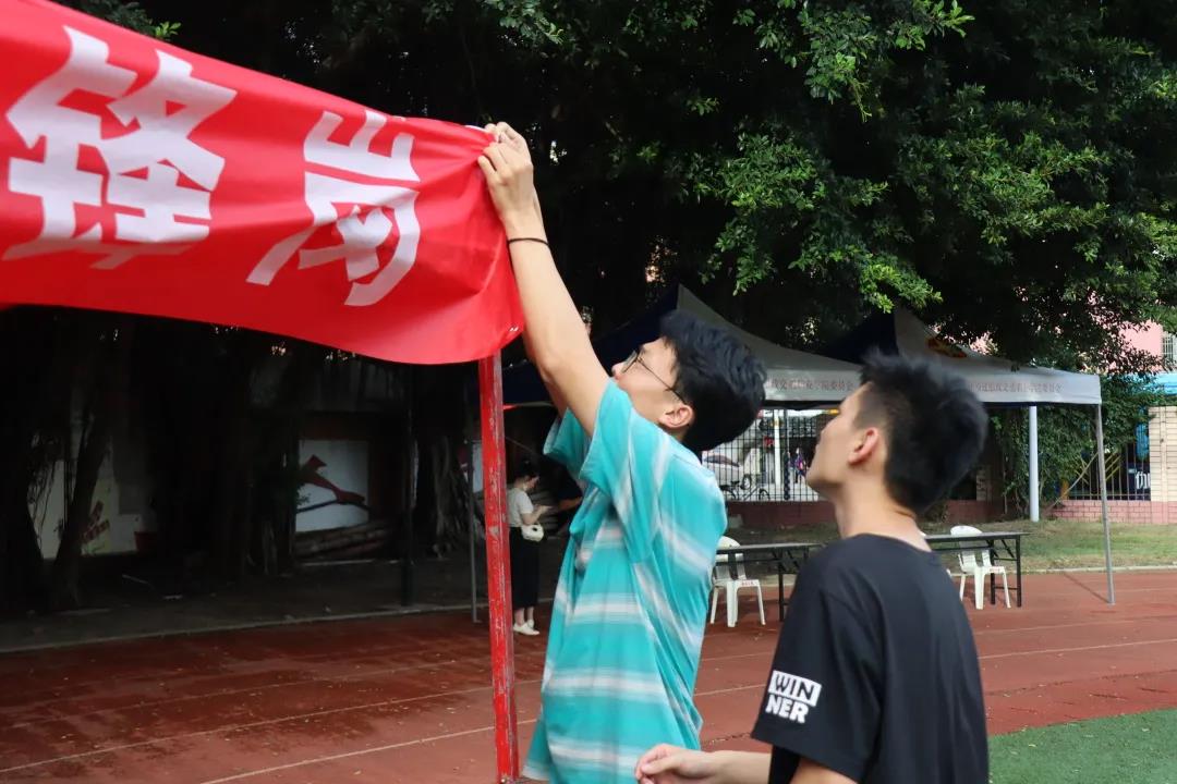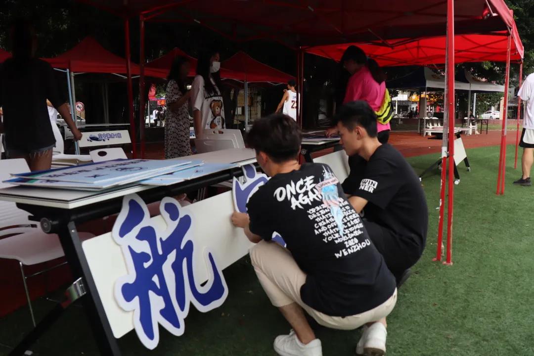 10月14日下午,迎新工作準(zhǔn)備的最后一天。學(xué)生干部和助教在蒙蒙細(xì)雨下搭建著迎新點(diǎn),為明日迎接新同學(xué)做著最后的準(zhǔn)備。