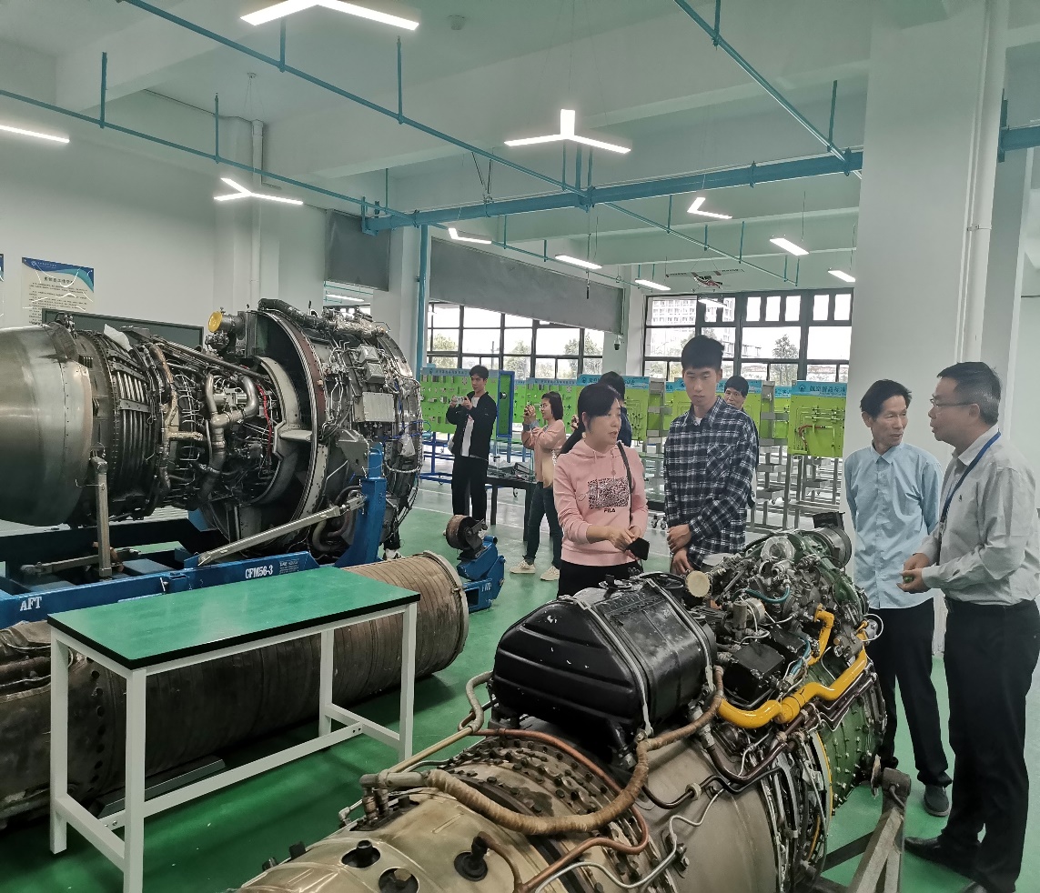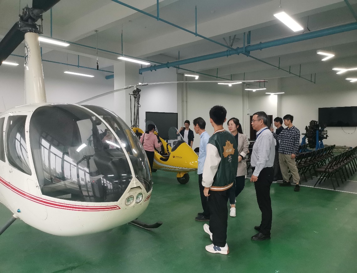 會后,全體黨員來到我院參觀產(chǎn)教融合實訓室:空乘模擬機艙、撤離平臺;航空航空管路維修實訓室、線路維修實訓室、飛機操縱實訓室、飛機緊固件與保險實訓室、飛機蒙皮鈑鉚實訓室、航模創(chuàng)作工作室。通用航空產(chǎn)業(yè)學院陳常暉院長陪同參觀,現(xiàn)場講解了實訓室的建設背景、整體規(guī)劃、建設方案、產(chǎn)教融合和使用情況。