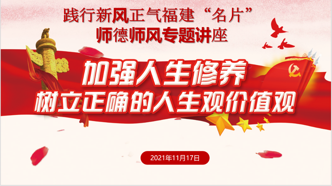 此次講座旨在踐行“堅守立德樹人初心,辦好人民滿意教育”的新風(fēng)正氣福建“名片”,深入貫徹教育部印發(fā)《新時代高校教師職業(yè)行為十項準(zhǔn)則》要求,通過此次的講座活動,牢固樹立教師正確的職業(yè)理想和推進(jìn)師德建設(shè)工作創(chuàng)新為主要任務(wù),進(jìn)一步加強師德師風(fēng)建設(shè)的制度化和規(guī)范化,提高我院師德師風(fēng)建設(shè)的成效,從而把我院的師德師風(fēng)建設(shè)工作引向深入,助力我校雙高建設(shè)高質(zhì)量的完成。