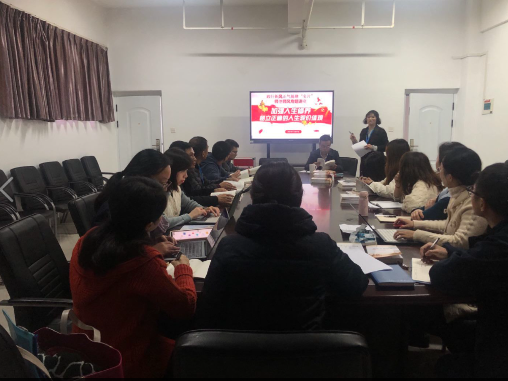 為進(jìn)一步加強教師隊伍建設(shè),提高教師職業(yè)道德素質(zhì)和教育教學(xué)能力,塑造教師良好的形象,形成愛崗敬業(yè)、為人師表、樂教善導(dǎo)、自尊自律、甘為人梯的崇高師德風(fēng)尚。 2021年11月17日下午,由學(xué)院黨總支副書記為全體教職工開展“加強人生修養(yǎng),樹立正確的人生觀價值觀”師德師風(fēng)建設(shè)專題講座。