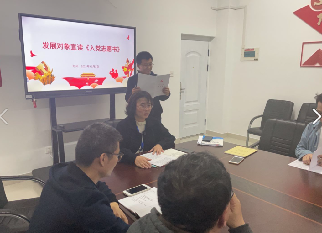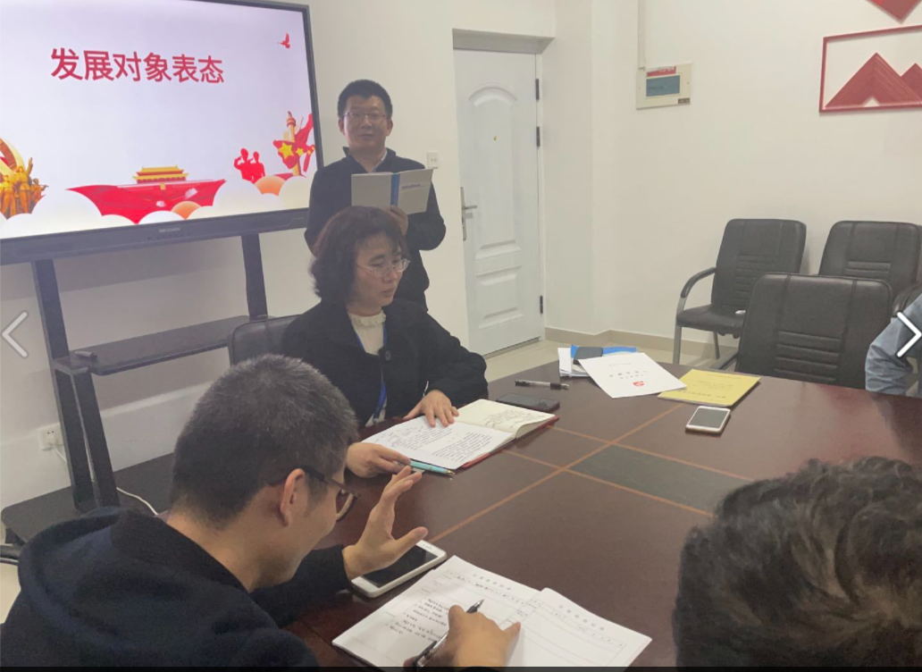 會(huì)議伊始,奏唱國際歌,在鏗鏘有力的歌聲中,大會(huì)正式拉開序幕。首先由組織員范聲斌同志宣讀本次會(huì)議的發(fā)展對(duì)象名單,并向與會(huì)同志介紹會(huì)議流程。