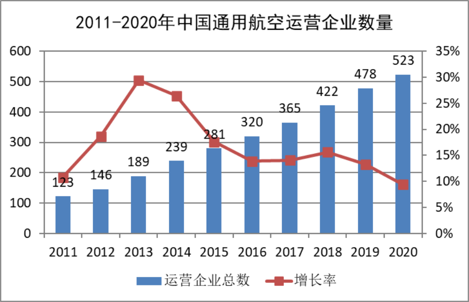 一、通用航空企業(yè)截至2020年底,全國(guó)通用航空企業(yè)共計(jì)523家,比上年增長(zhǎng)9.4%。從地區(qū)分布看,通用航空企業(yè)排名前三的地區(qū)為:華東地區(qū)131家,中南地區(qū)120家,華北地區(qū)111家;2021年上半年新成立通航企業(yè)42家,總數(shù)達(dá)到565家;全行業(yè)無(wú)人機(jī)運(yùn)營(yíng)企業(yè)為11084家,較上年增長(zhǎng)55.0%。從地區(qū)分布看,無(wú)人機(jī)企業(yè)排名前三的地區(qū)為:華東地區(qū)3748家,中南地區(qū)2132家,華