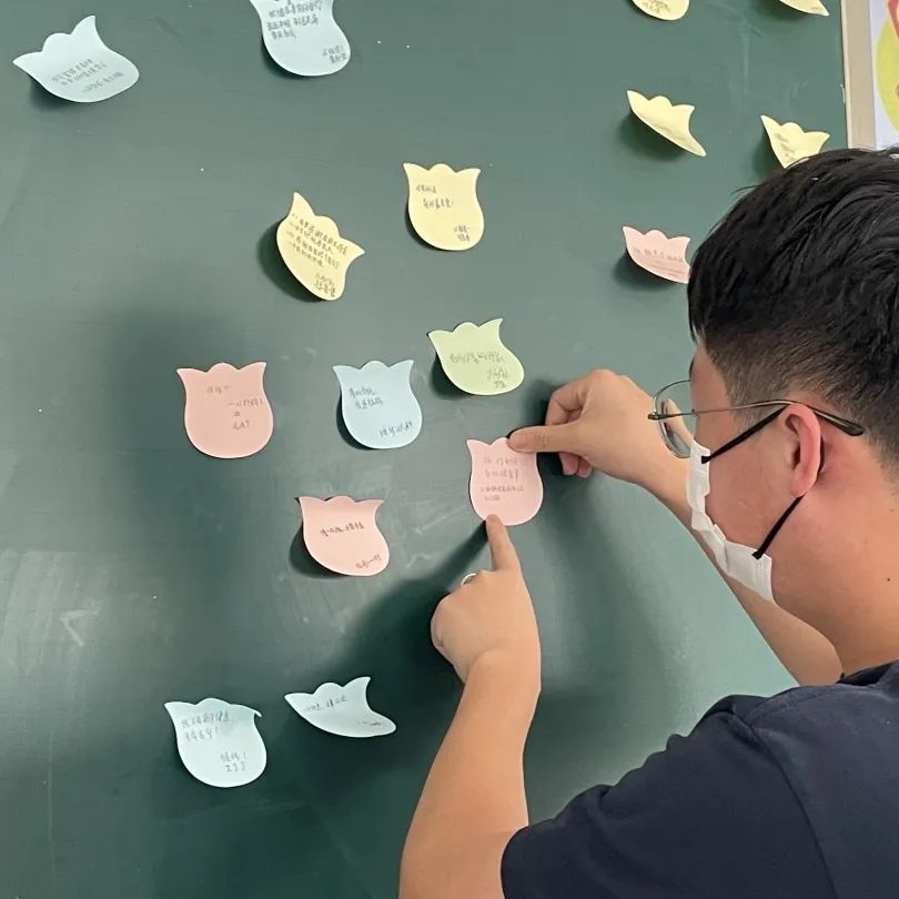 緊接著志愿者們準(zhǔn)備了一些樹葉型紙條讓同學(xué)們寫上想對勞動人民說的祝福語,樹葉+祝福=念想,把樹葉作為念想,將祝福語鑲于其中,實現(xiàn)彼此的心語心愿,送上最真摯的祝福,留下美好的紀(jì)念。