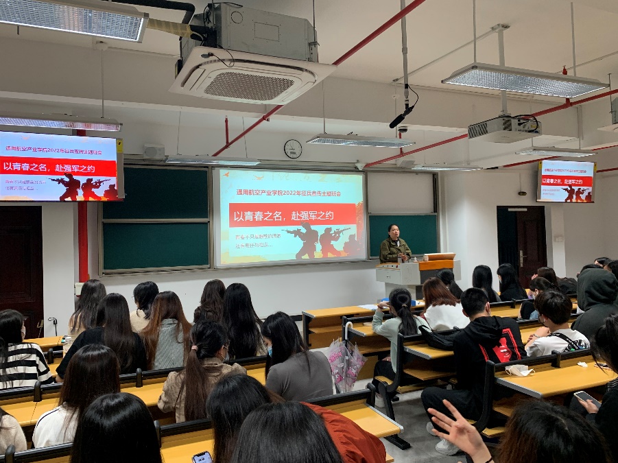 為響應(yīng)黨和國家的號召,切實做好大學(xué)生征兵宣傳工作,充分調(diào)動同學(xué)們應(yīng)征入伍的積極性,5月12日通用航空產(chǎn)業(yè)學(xué)院在綜合實訓(xùn)大樓605教室舉行了2022屆畢業(yè)生征兵入伍宣傳教育主題班會,會議由輔導(dǎo)員藍(lán)凌燕老師主持。