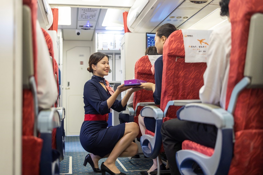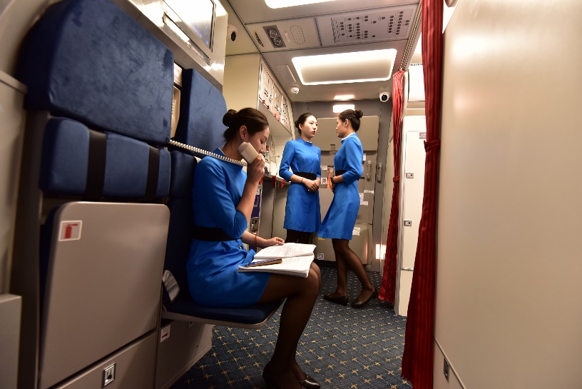 在課上,空中乘務(wù)的老師及同學(xué)用燦爛的笑容和專業(yè)的素質(zhì)共同模擬演示了客艙服務(wù)的全過程以及各種突發(fā)情況,包括迎接乘客登機(jī)、安全演示、客艙餐飲與娛樂服務(wù)、歡送乘客下飛機(jī)等??罩谐藙?wù)的同學(xué)們能明確并熟悉客艙服務(wù)的工作程序及相關(guān)內(nèi)容要求,很好地展現(xiàn)空中乘務(wù)員的職業(yè)形象和專業(yè)素養(yǎng),并能熟悉客艙安全規(guī)則、安全管理,能完整而又準(zhǔn)確地提供客艙正餐服務(wù),同時(shí)也展示了航空學(xué)子忠誠(chéng)擔(dān)當(dāng)、嚴(yán)謹(jǐn)科學(xué)、團(tuán)結(jié)協(xié)作、敬業(yè)奉獻(xiàn)的專業(yè)精神。