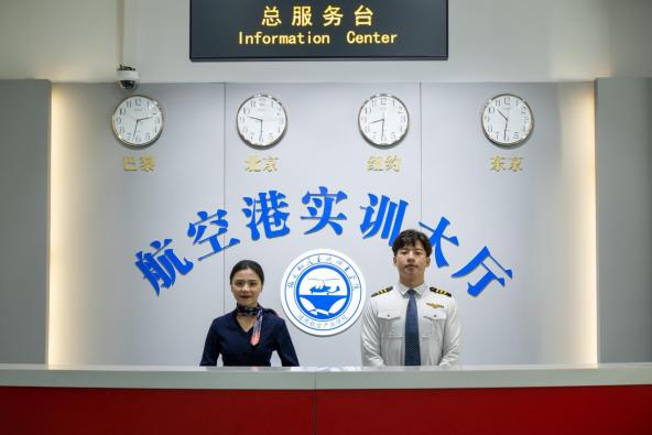 “空中乘務(wù)”實訓(xùn)中心,按照民航總局四級乘務(wù)員教學(xué)培訓(xùn)標準,建設(shè)有模擬客艙、撤離平臺、機場地面服務(wù)、形體訓(xùn)練室等。