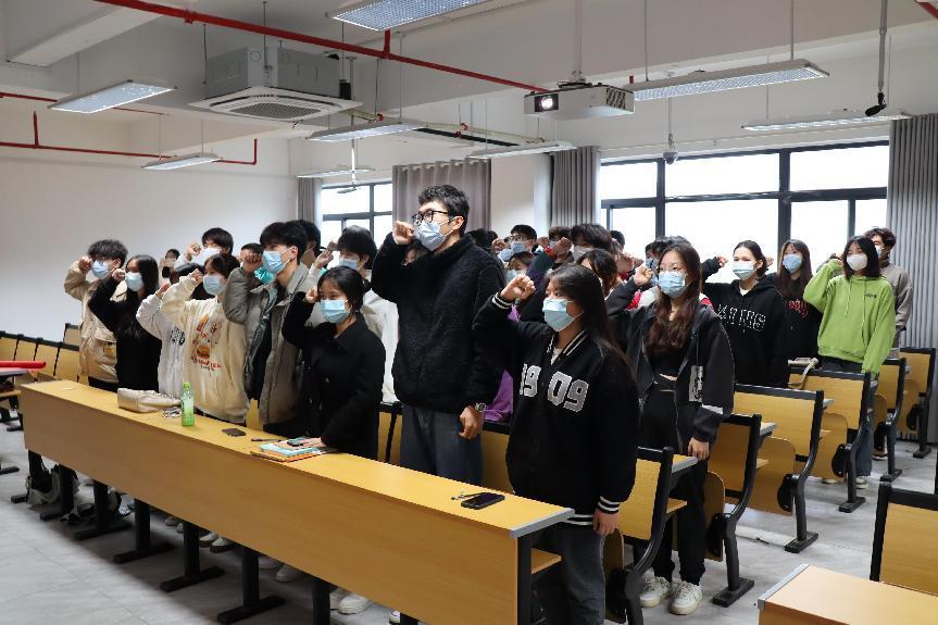 隨后,全體同學(xué)起立,舉起右拳,宣讀誠信考試宣誓詞。同學(xué)們鏗鏘有力的聲音回蕩在教室上方,表示同學(xué)們心中對(duì)誠信應(yīng)考的堅(jiān)定決心。