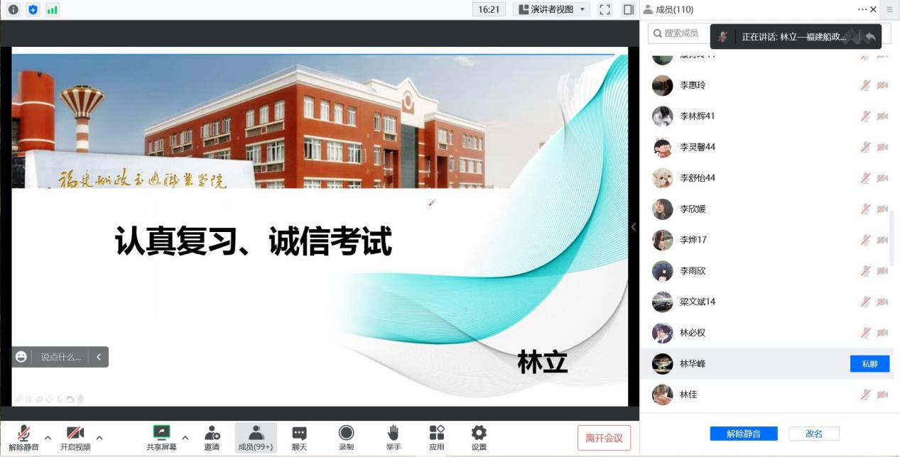 同時(shí),各班還自行組織考試誠信教育主題班會(huì)。老師帶領(lǐng)全體同學(xué)認(rèn)真學(xué)習(xí)了學(xué)校關(guān)于學(xué)生考試紀(jì)律和違紀(jì)認(rèn)定處理辦法、大學(xué)生違紀(jì)處分規(guī)定等內(nèi)容,并通報(bào)了以往因考試作弊受到處分的案例、講清楚嚴(yán)重后果。幫助同學(xué)們從思想上認(rèn)識(shí)到誠信考試的重要性和必要性,希望大家能夠嚴(yán)格遵守考試紀(jì)律,誠信考試,依靠自己的努力學(xué)習(xí)取得優(yōu)異成績。