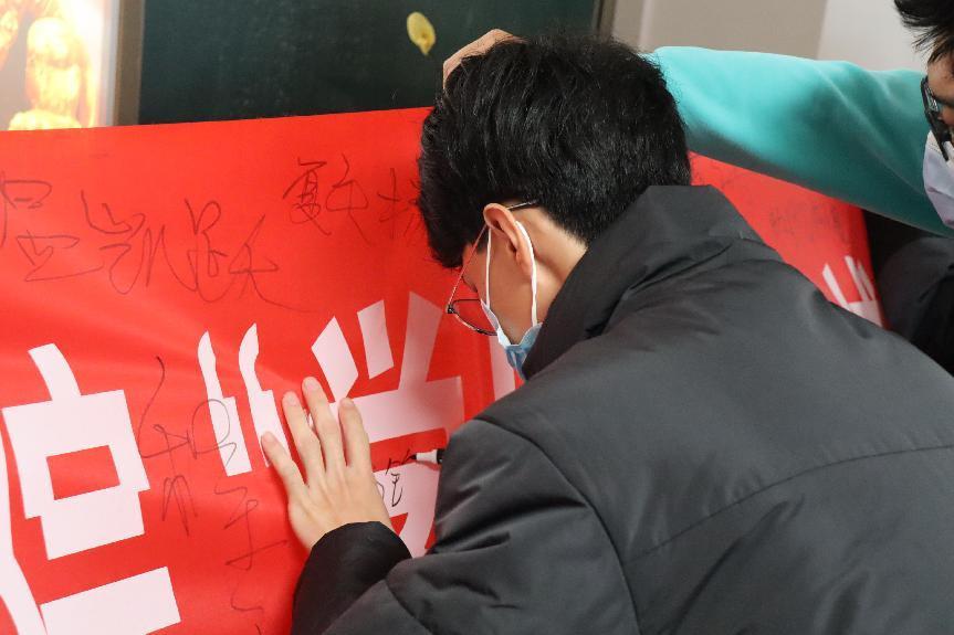 接下來同學(xué)們一一在印有“考之以誠,答之以信”誠信考試條幅上鄭重簽下自己的名字,再次表明了自己要堅(jiān)守承諾、誠信應(yīng)考的決心。