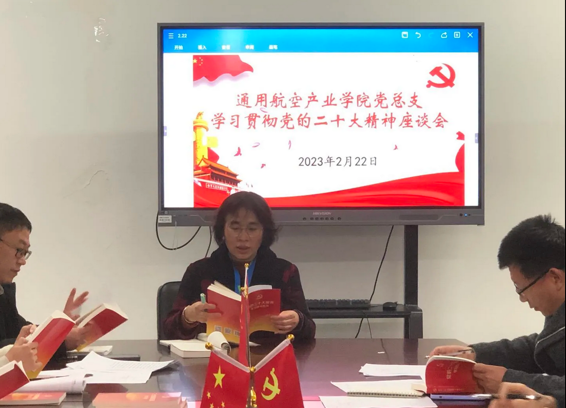 首先,黨總支副書記蘇漢美匯報了學院開展學習宣傳貫徹黨的二十大精神的基本情況,并領(lǐng)學了黨的二十大報告。