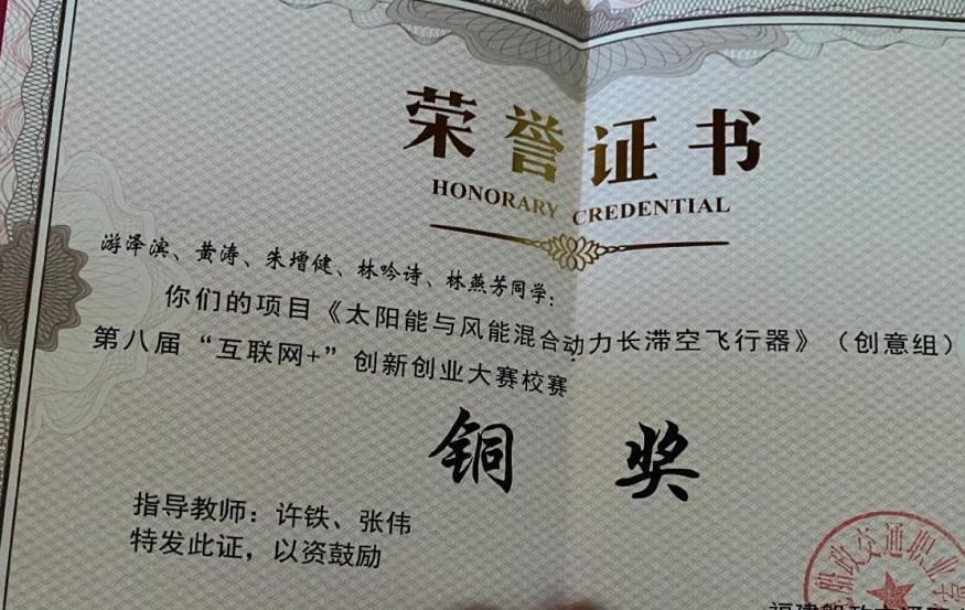 社團(tuán)成員出于對(duì)航空器的熱愛,以解決航空器動(dòng)能不足的問題為出發(fā)點(diǎn),自主設(shè)計(jì)研發(fā)太陽能與風(fēng)能混合動(dòng)力的飛行器,參加院?;ヂ?lián)網(wǎng)+創(chuàng)新創(chuàng)業(yè)大賽。取得優(yōu)秀名次。