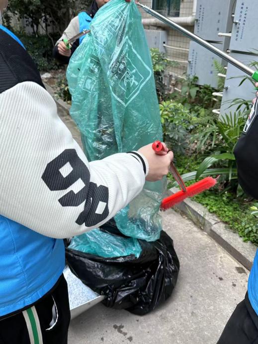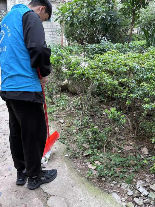 活動中,志愿者們身穿藍馬甲,充分展示當(dāng)代大學(xué)生朝氣蓬勃、健康向上的精神風(fēng)貌,為社區(qū)綠化帶進行深層次的清潔,生活環(huán)境更加美觀和諧,社區(qū)面貌煥然一新,社區(qū)居民的精氣神更加飽滿。