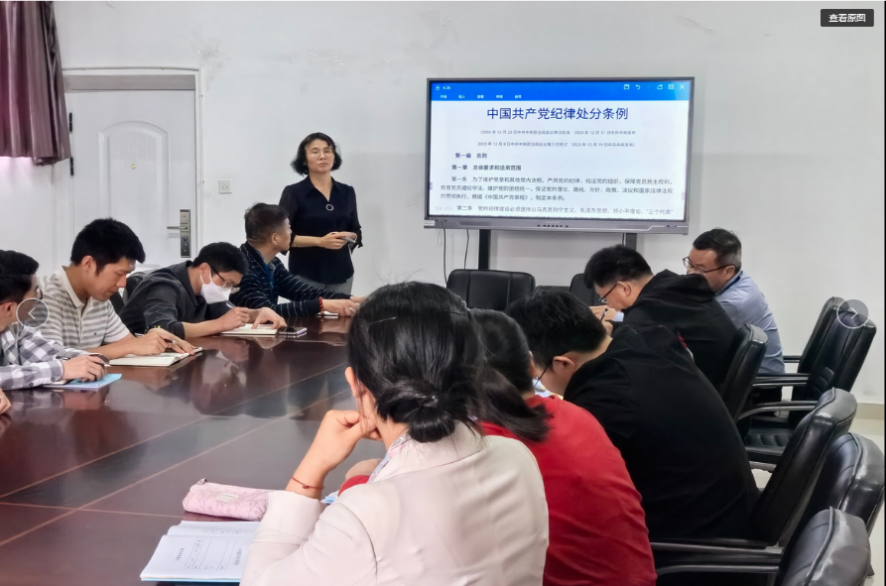 隨后,黨總支副書記蘇漢美同志以“習(xí)近平總書記關(guān)于黨的自我革命的重要思想 ”為切入點(diǎn),重點(diǎn)講述《中國共產(chǎn)黨紀(jì)律處分條例》修訂的時代背景、主旨要義及貫徹執(zhí)行等三個方面,全面系統(tǒng)地解讀了新修訂的《條例》,幫助與會人員進(jìn)一步深化對《條例》重大意義的認(rèn)識,準(zhǔn)確把握此次《條例》修訂的鮮明特點(diǎn),深刻領(lǐng)會《條例》的豐富內(nèi)涵,自覺將紀(jì)律要求內(nèi)化于心、外化于行,確保全黨目標(biāo)一致、團(tuán)結(jié)一致、步調(diào)一致,推動學(xué)院全面從嚴(yán)治黨向縱深發(fā)展。