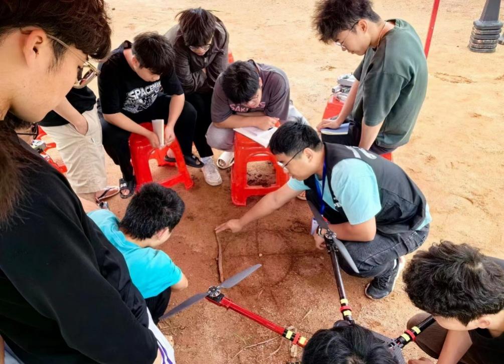 活動(dòng)先由航模社成員表演穿越機(jī),航模社成員的穿越機(jī)在天空中自由穿梭,來(lái)去自如,引得不少同學(xué)駐足觀看、連連稱贊,接下來(lái)由老師現(xiàn)場(chǎng)為大家指導(dǎo)講解八字飛行的技巧,同學(xué)們?cè)诶蠋煹闹笇?dǎo)下嘗試飛行,感受著航模在他們手中穿行、加速、翻轉(zhuǎn),劃出一道道優(yōu)美的弧線。