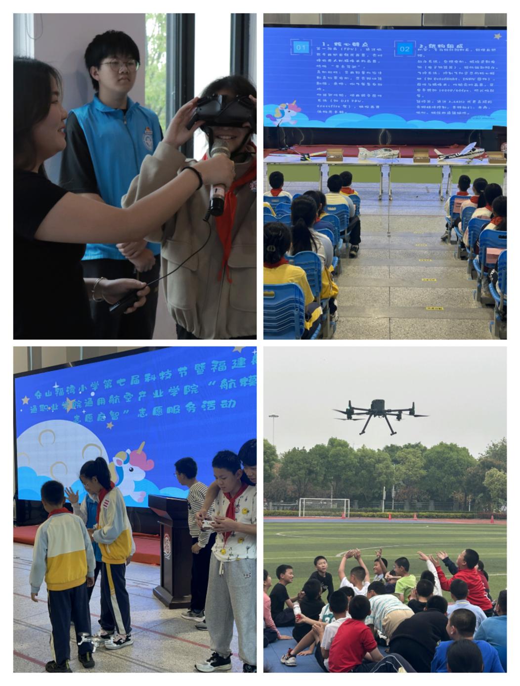 活動伊始,志愿者們迅速行動起來,以飽滿的熱情投入到各個環(huán)節(jié)。知識科普區(qū),志愿者們化身為“航空老師”,借助精心準備的PPT和趣味十足的動畫視頻,深入淺出地向小學生們講解無人機與飛機的構(gòu)造、飛行原理等知識,孩子們聚精會神,眼中閃爍著好奇與渴望。體驗區(qū)更是熱鬧非凡,志愿者們帶來的虛擬現(xiàn)實VR設(shè)備和夾子機,讓孩子們親生體驗科技的魅力。最震撼的當屬無人機飛行展示環(huán)節(jié),起飛指令下達,無人機如離弦之箭般緩緩升空,在空中靈活盤旋,做出各種高難度動作。孩子們仰著頭,滿是好奇與興奮,歡呼聲、驚嘆聲此起彼伏,現(xiàn)場氣氛瞬間被推向頂點,這場精彩絕倫的無人機表演,在孩子們心中種下了科學的種子,激發(fā)了他們對未知的探索欲,點燃了他們的科學探索精神,為他們打開了一扇通往科技世界的大門。